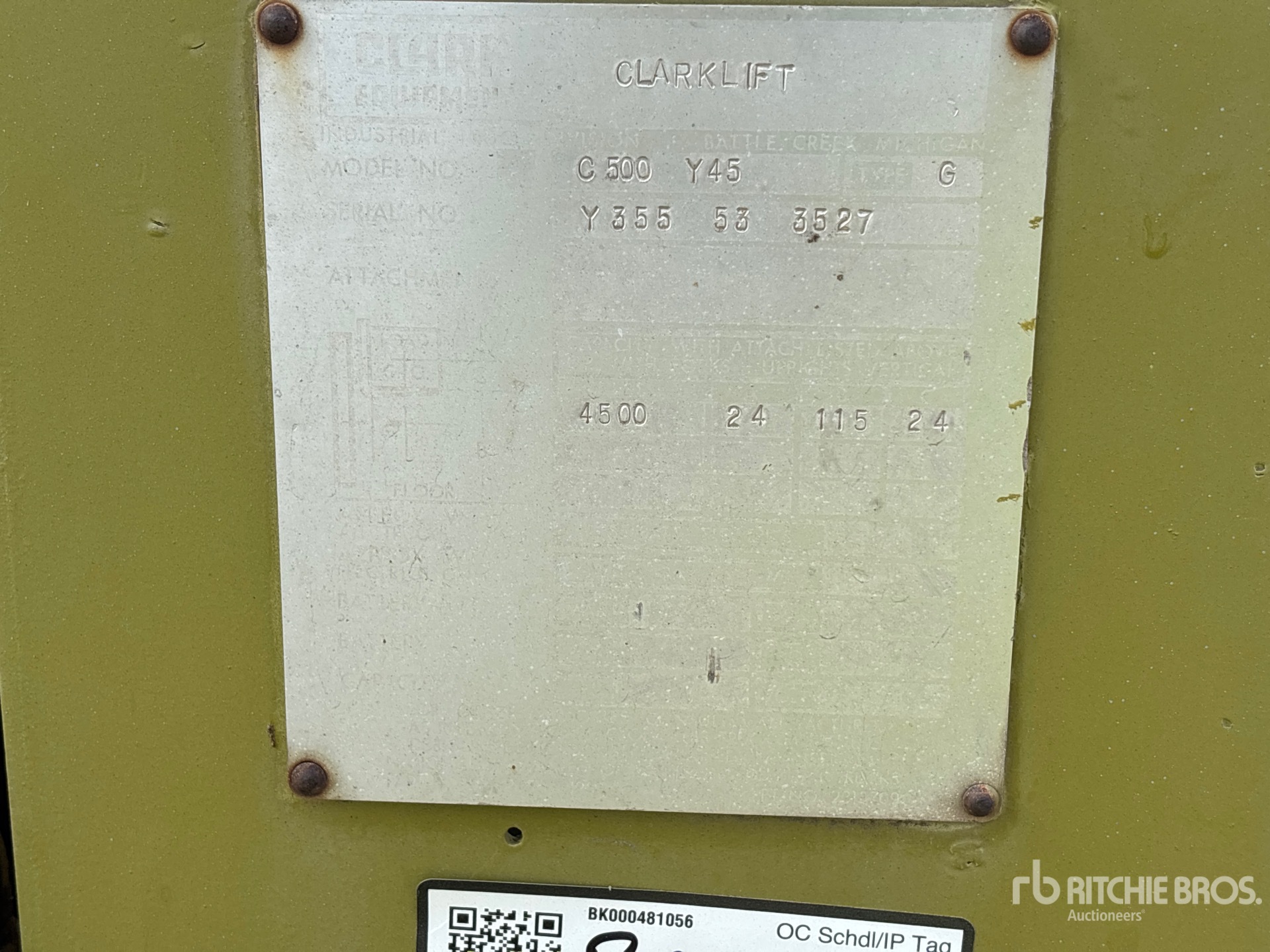 詳細的設備資訊範圍有限,利氏兄弟拍賣行並未檢驗除此處明確規定以外的任何設備部分或組件。除非明確說明,否則我們對設備或其組件不做任何明示或暗示的陳述或保證,包括但不限於有關功能性、符合性或遵守任何適用當局或監管機構的任何安全標準或要求、適合任何特定用途或適銷性的陳述或保證。強烈建議您在投標前自行詳細檢驗設備。