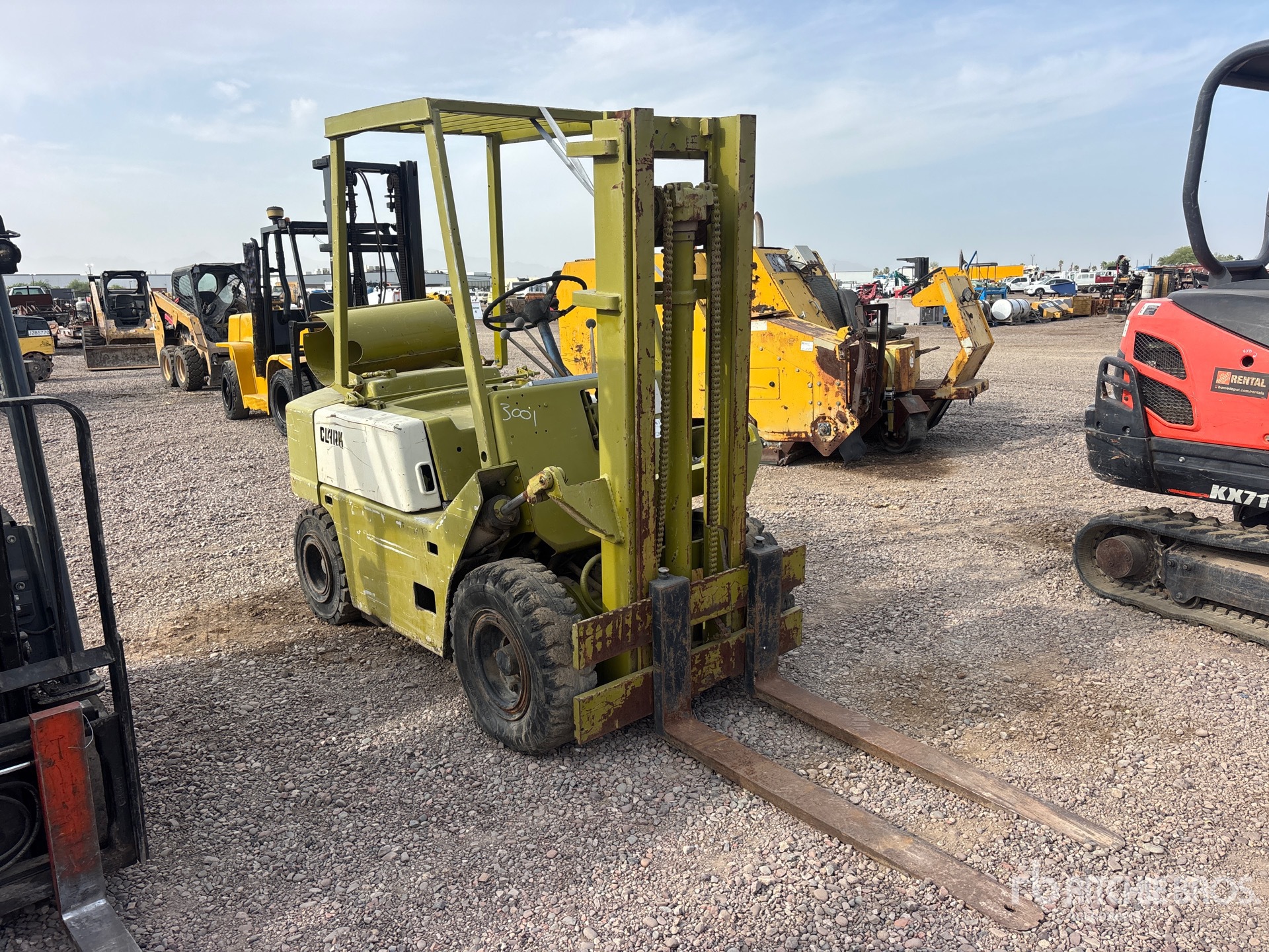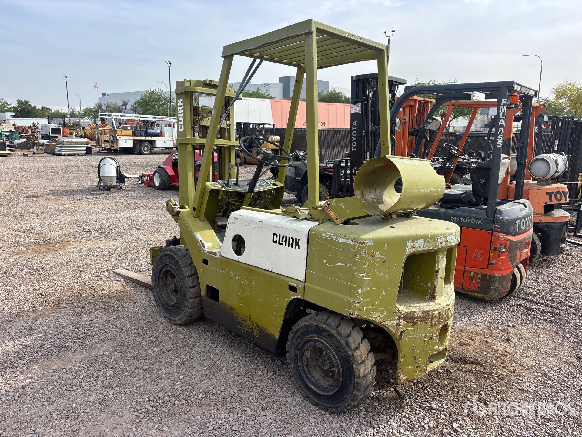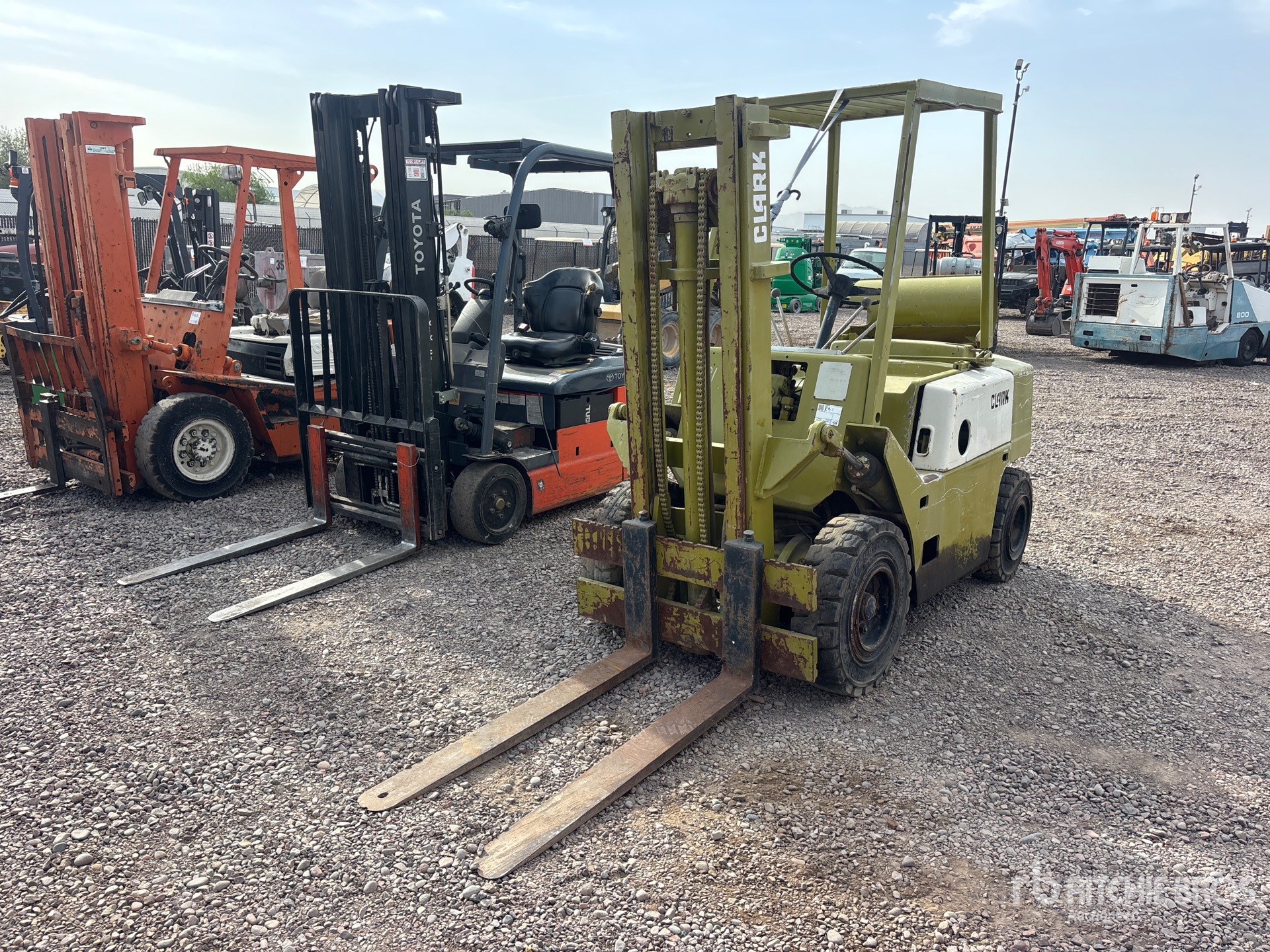 3 Stage Mast, 115 in Max Lift Height, 77 in Lowered Mast Height, 48 in Forks, Clark 4 Cylinder LPG Engine