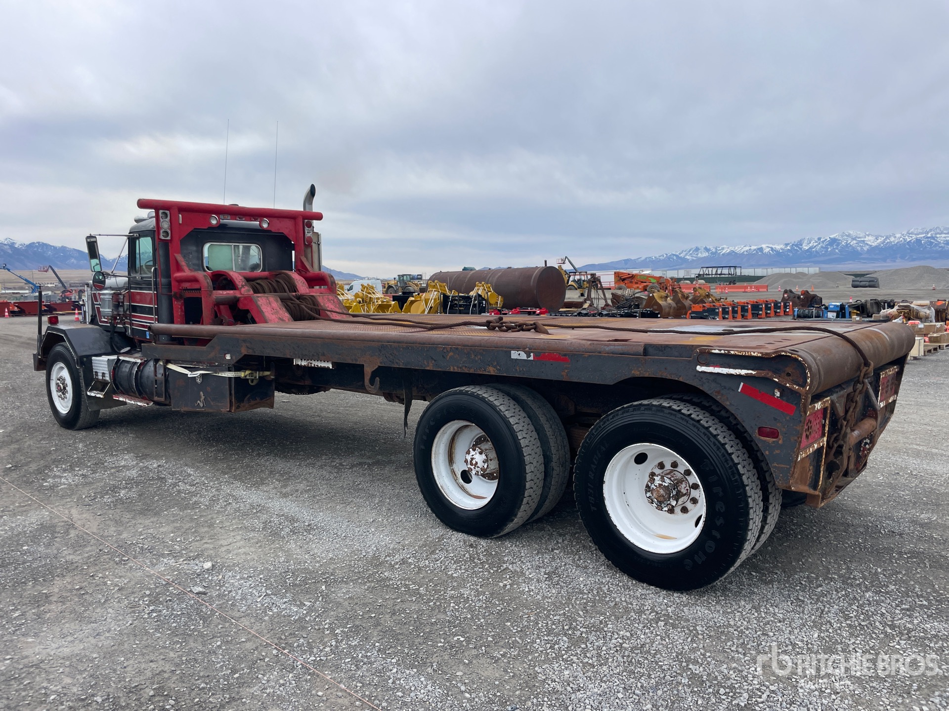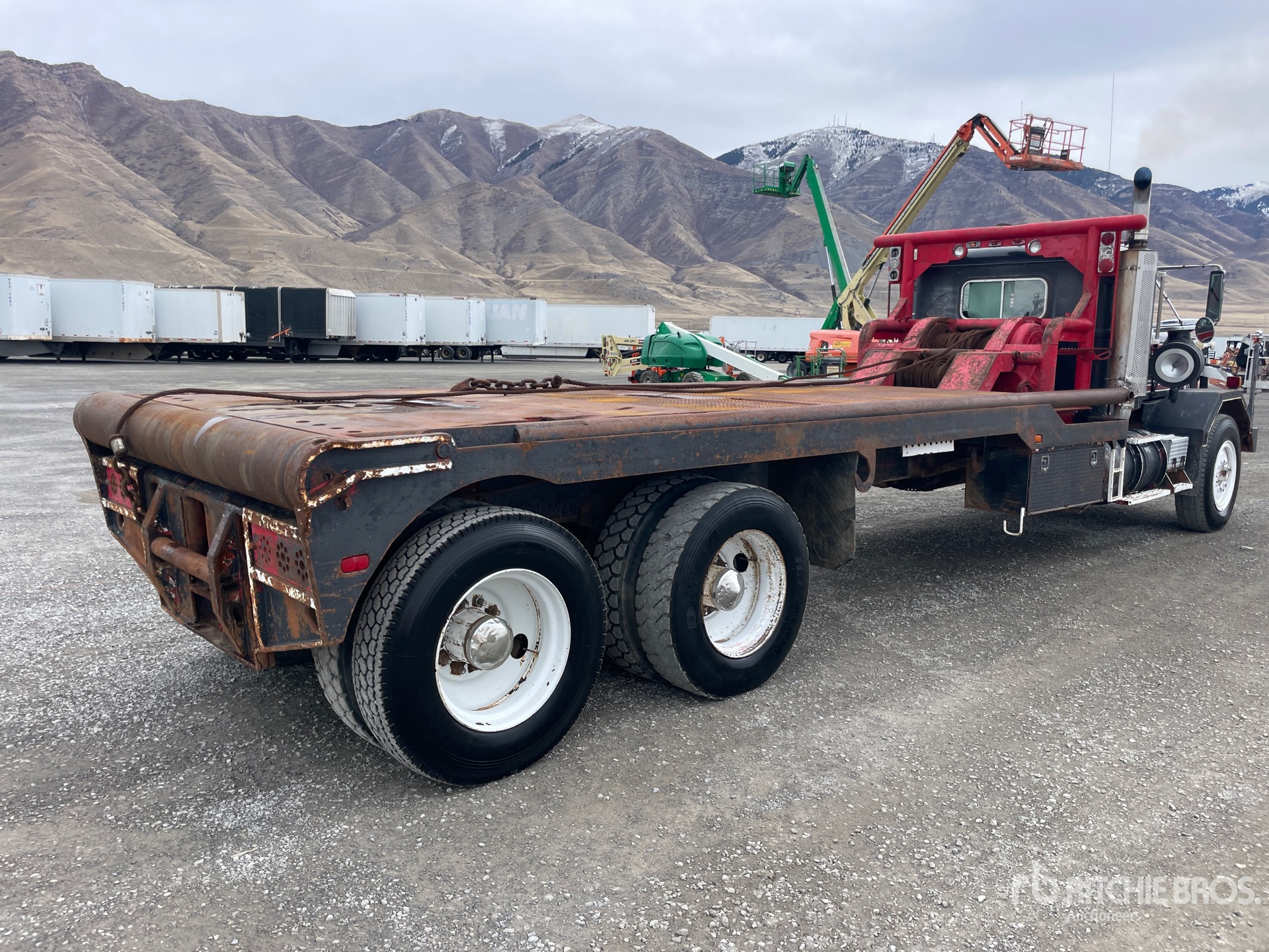 Cummins 6 Cylinder Diesel 400 hp Engine, 1500 Engine hrs, Engine Brake, Spicer SST-6 6-Speed Manual Transmission, 12R24.5 Front Tires, 11R24.5 Rear Tires, Double Frame, Hendrickson RT/RTE Series Spring over Walking Beam Suspension, 312 in Wheelbase, PTO, 17 ft x 87 in Bed, Tail Roll, 20 ft 8 in Gin Poles, Tulsa Winch