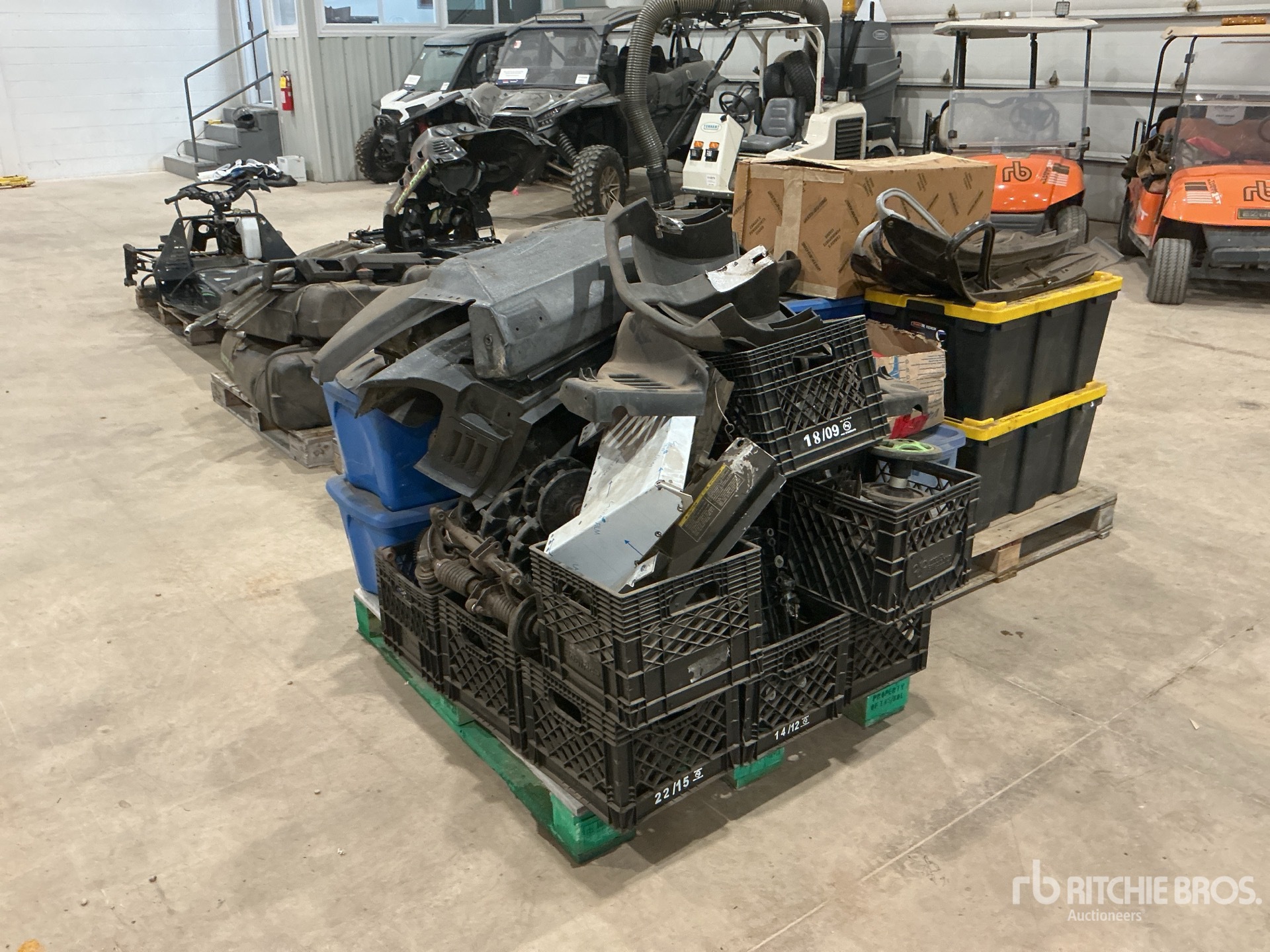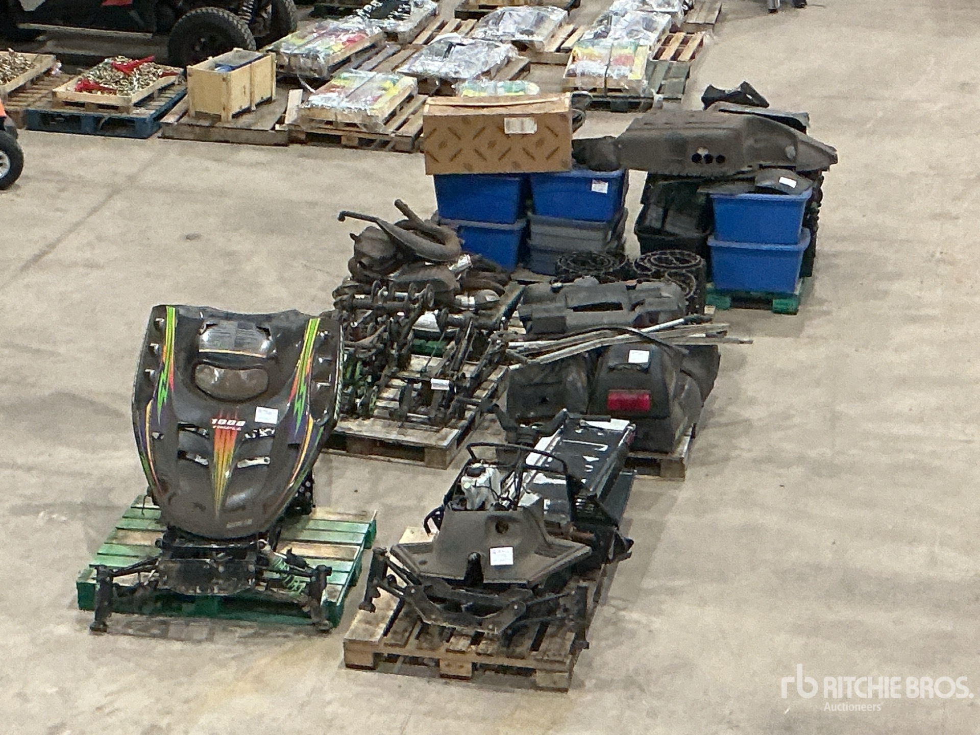 Tracks, Suspensions, Engine cases, Tanks, Seats, Drive shafts, Drive cases, Specialized tools , Many new items in bins