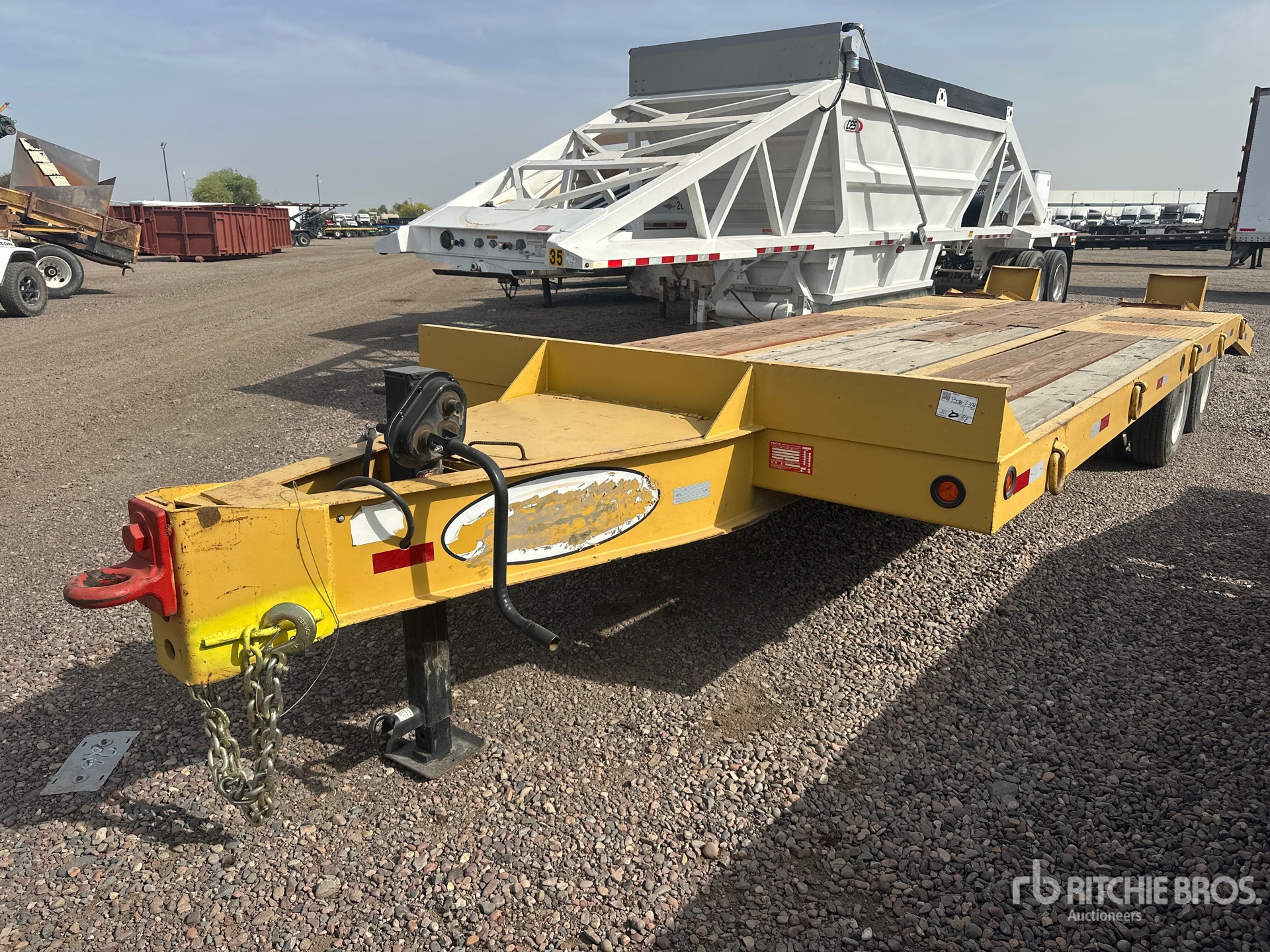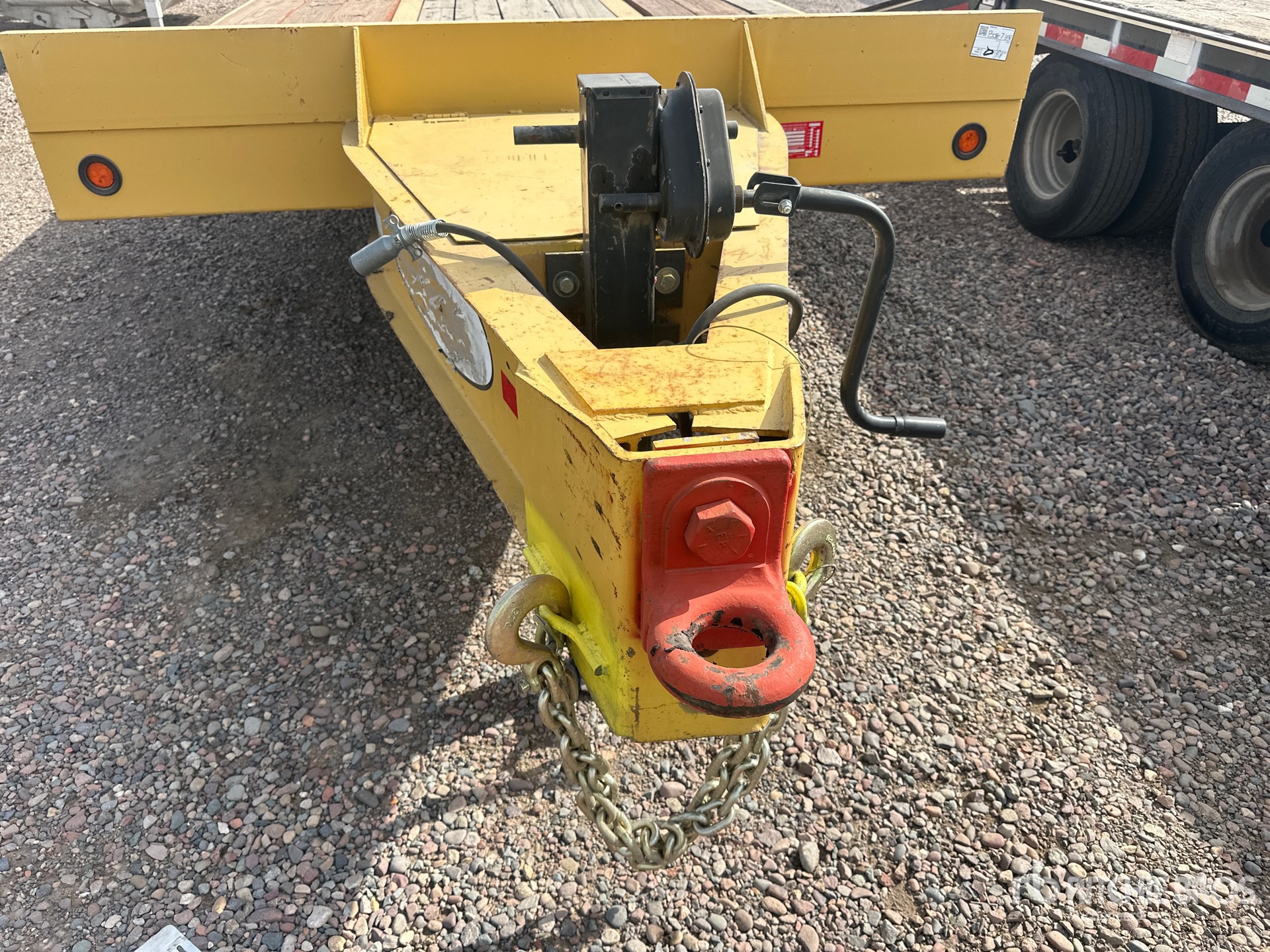 Located in Lane 8 Spot 26, Lunette Ring Hitch, Spring Suspension, Electric Brakes, 20 ft Main Deck, 4 ft Dovetail, 102 in Usable Deck Width, Deck Over Tires, Spring Assisted Ramps, 245/75R16 Tires