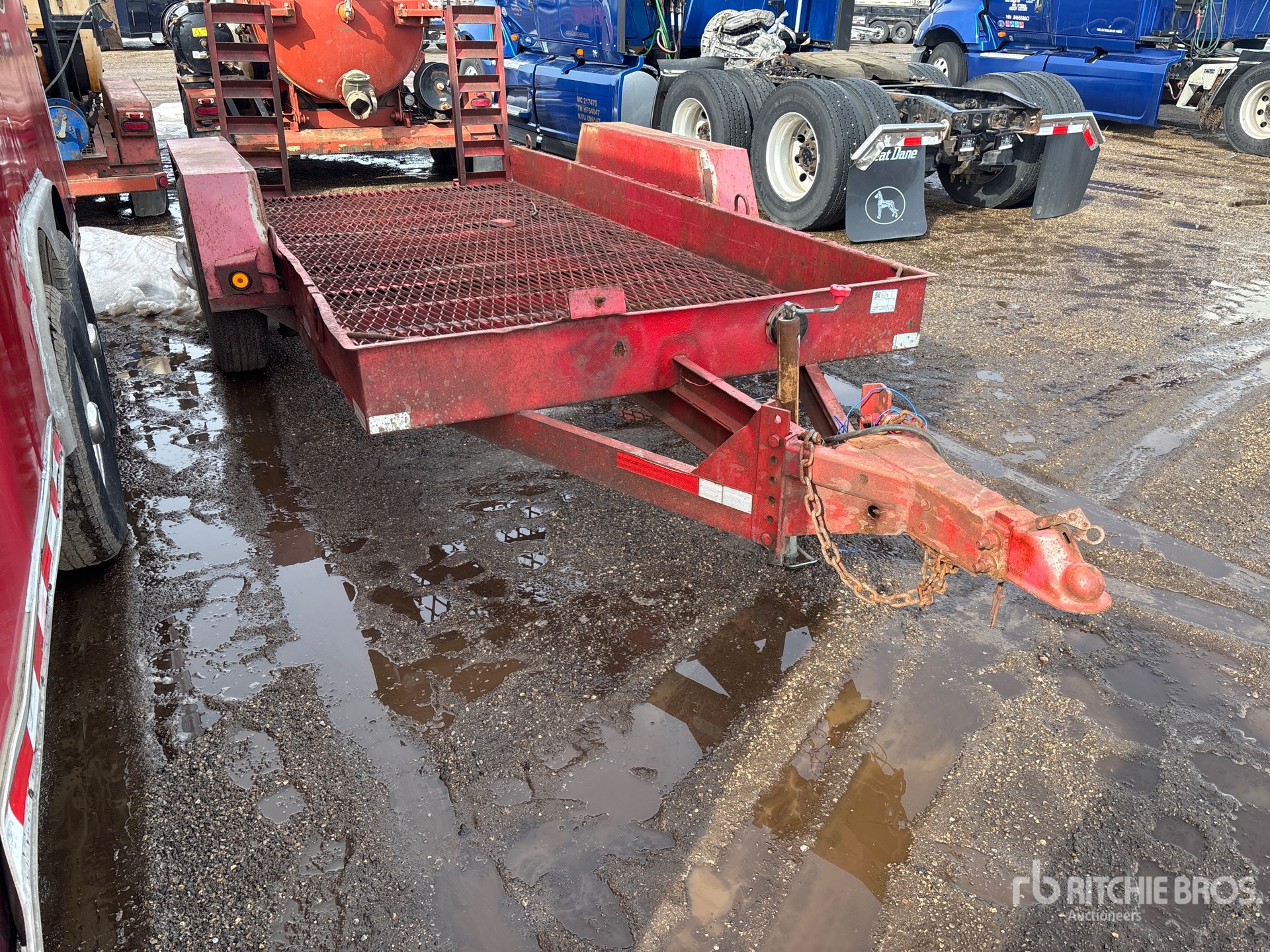 Located in Lane 16 Spot 7, Ball Hitch, Spring Suspension, Electric Brakes, 14 ft Main Deck, 76 in Overall Deck Width, Manual Ramps, Steel Decking, 205/75R14 Tires
