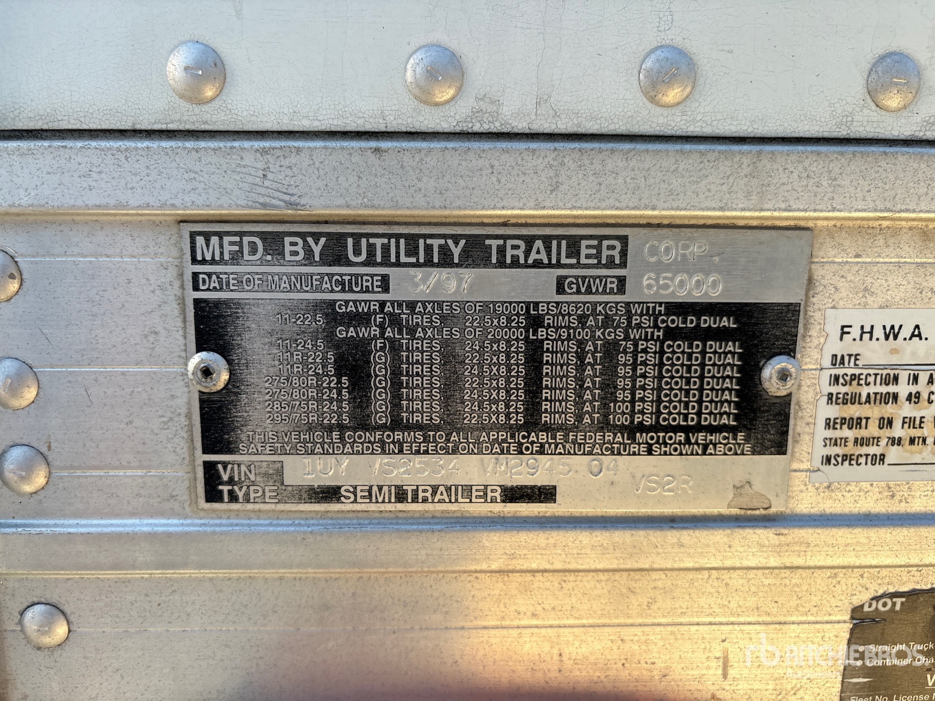 Aluminum/Steel Combination Frame, Air Ride Sliding Suspension, Ducted Floor, Swing Door, 295/75R22.5 Tires 68000 lb GVWR