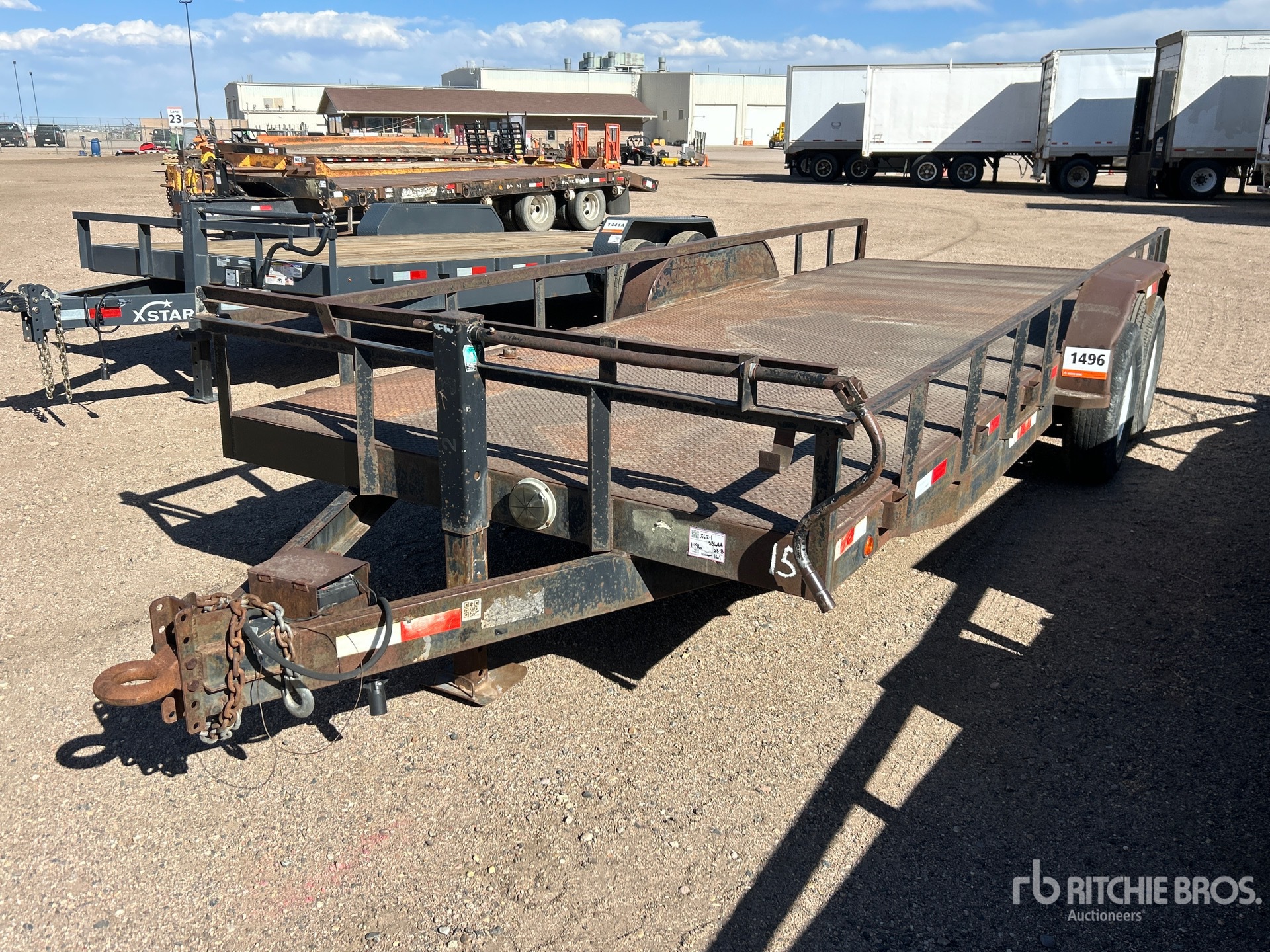 Located in Lane 23 Spot 8, Lunette Ring Hitch, Spring Suspension, 84 in Deck Width, 84 in Overall Width, Steel Decking, 235/80R16 Tires