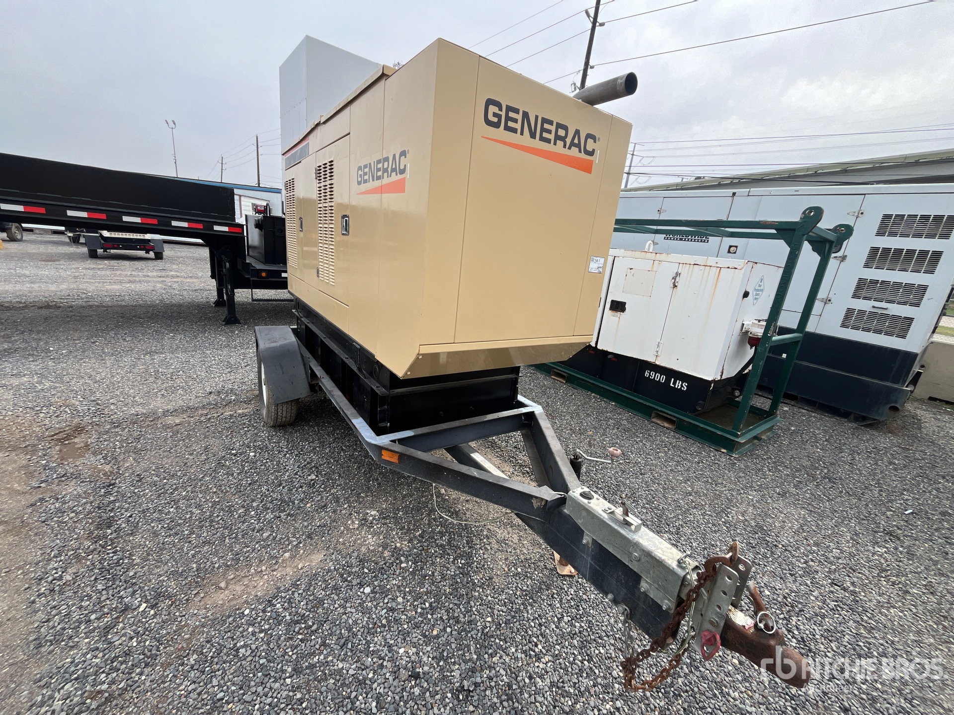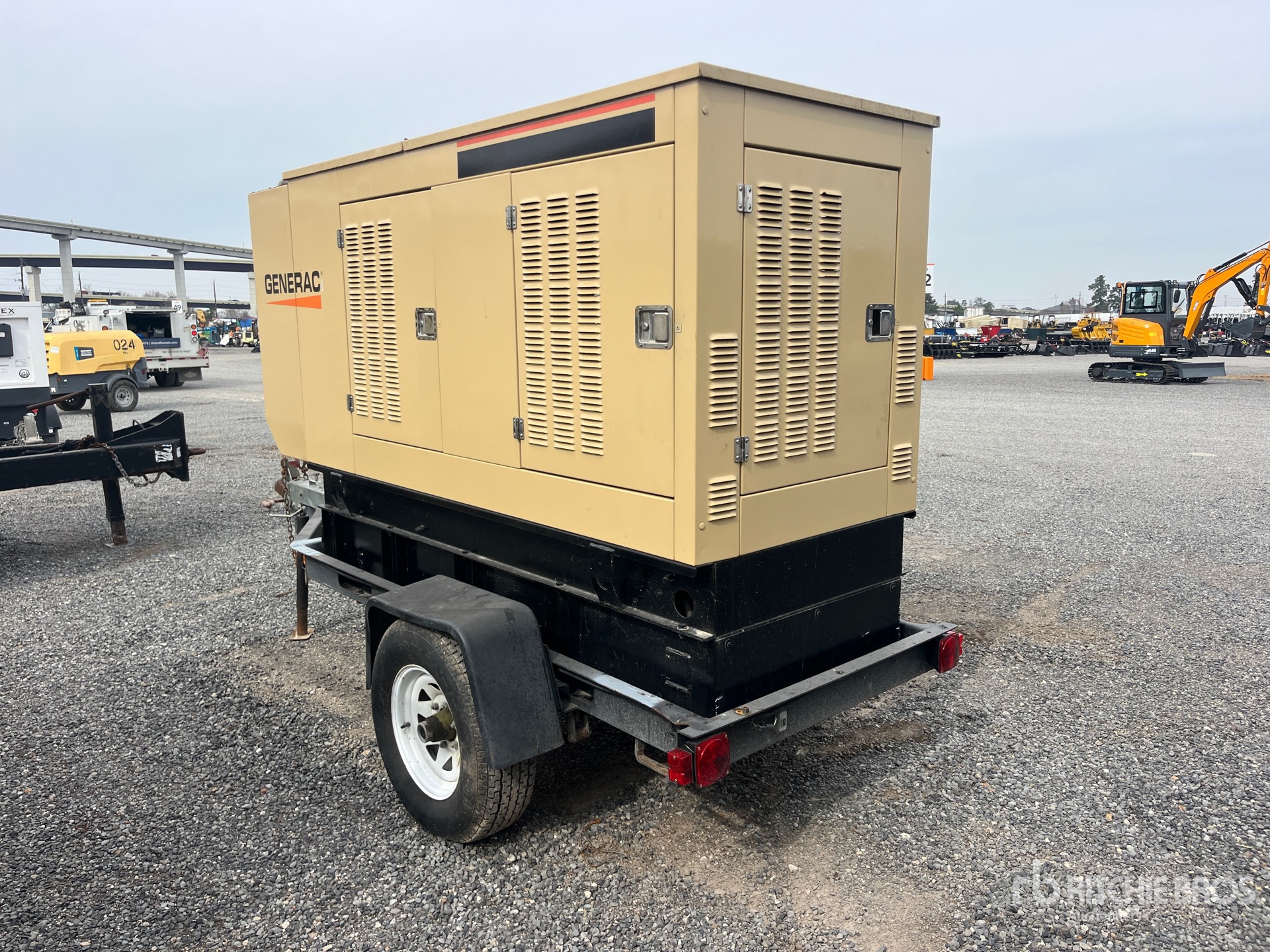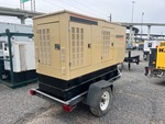1996 US EPA Label, Generac 080 eKW 4 Cylinder 122 hp 5 L Diesel Engine, 100 kVA/80 kW Rated 3 Phase Output, 277 V / 480 V Rated Voltage, Bottom Mounted Fuel Tank, Ball Hitch Carrier Trailer