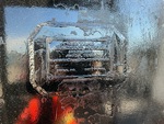 Frame boxed in by hoses and wiring