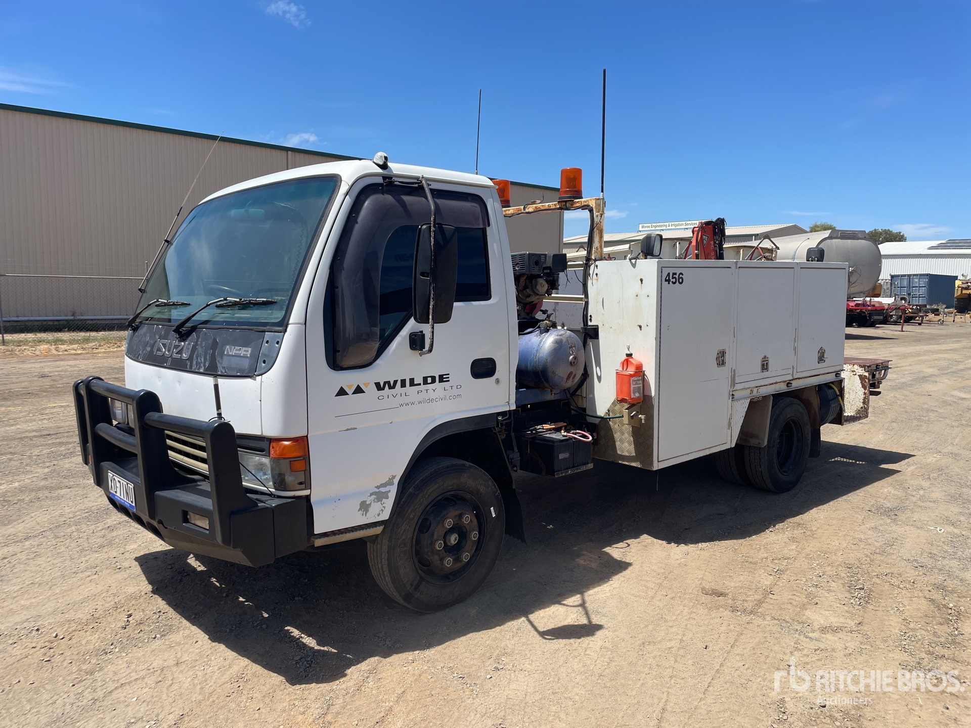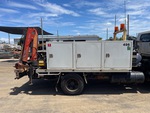 4HE1 4 Cylinder Diesel 140 hp Engine, Exhaust Brake, 5-Speed Manual Transmission, 215/75R17.5, Spring Suspension, 3400 mm Wheelbase, Hydraulic System, 3800 mm Body, Manual Stabilizers, Palfinger PC2300 990 kg 4 Section Hydraulic Crane, Atlas Copco Air Compressor, GVM 7.5 t, Toolboxes, equipment-from-wilde-civil
