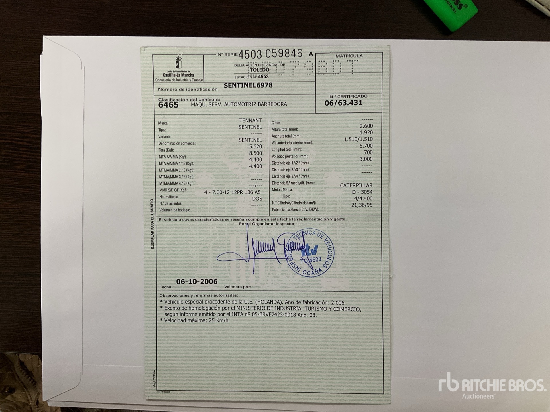 Matriculado en Espana, ITV pendiente a cuenta comprador/ Spanish Registration, Technical Inspection pending**SOLO PARA EL MERCADO NACIONAL Y EUROPEO/ ONLY FOR EUROPE MARKET, THIS LOT CAN NOT BE EXPORTED OUTSIDE OF EUROPE, for more information, please contact our office**THE VEHICLE MAY ONLY BE REMOVED ONCE THE TITLE IS CANCELED IN TRAFFIC OFFICE****COPIA CERTIFICADO CE DISPONIBLE/ COPY CE CERTIFICATE AVAILABLE**