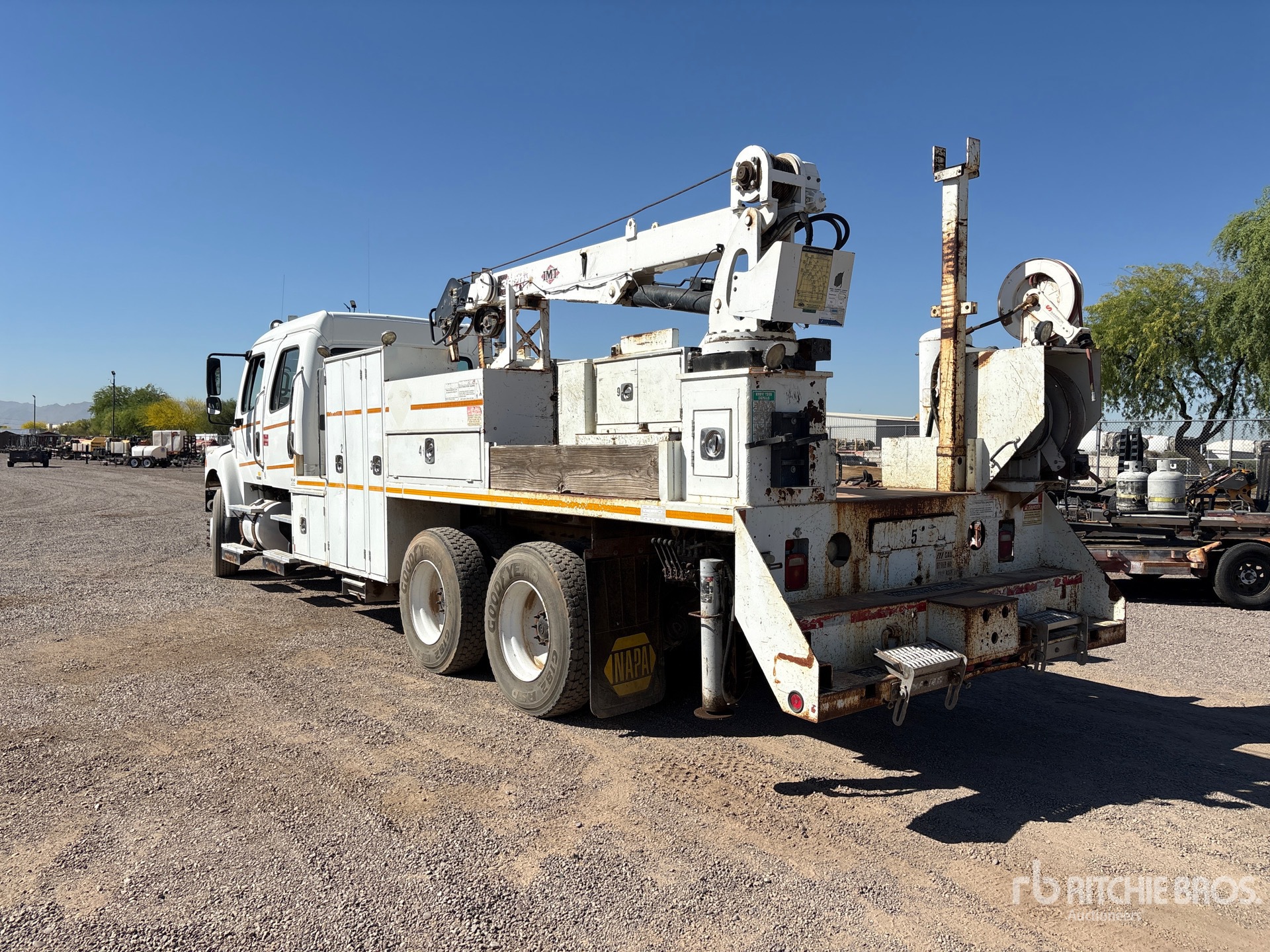 Located in Lane 16 Spot 12, Cat C7 6 Cylinder 7.2 L Diesel Engine, Eaton Fuller Manual Transmission, 14600 lb Front Axle, 40000 lb Rears, 54600 lb GVWR, 12R22.5 Front Tires, 11R22.5 Rear Tires, Spring Suspension, 269 in Wheelbase, PTO, AUTO TRUCK 24 ft 1 in Body, Hydraulic Stabilizers, 2006 IMT 3800 lb 2 Section Hydraulic Crane, Wired Remote Control