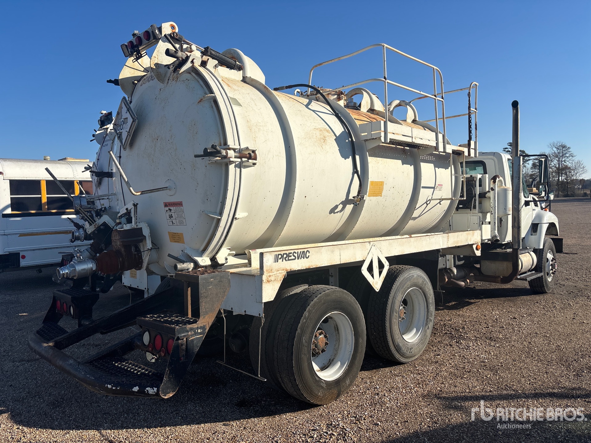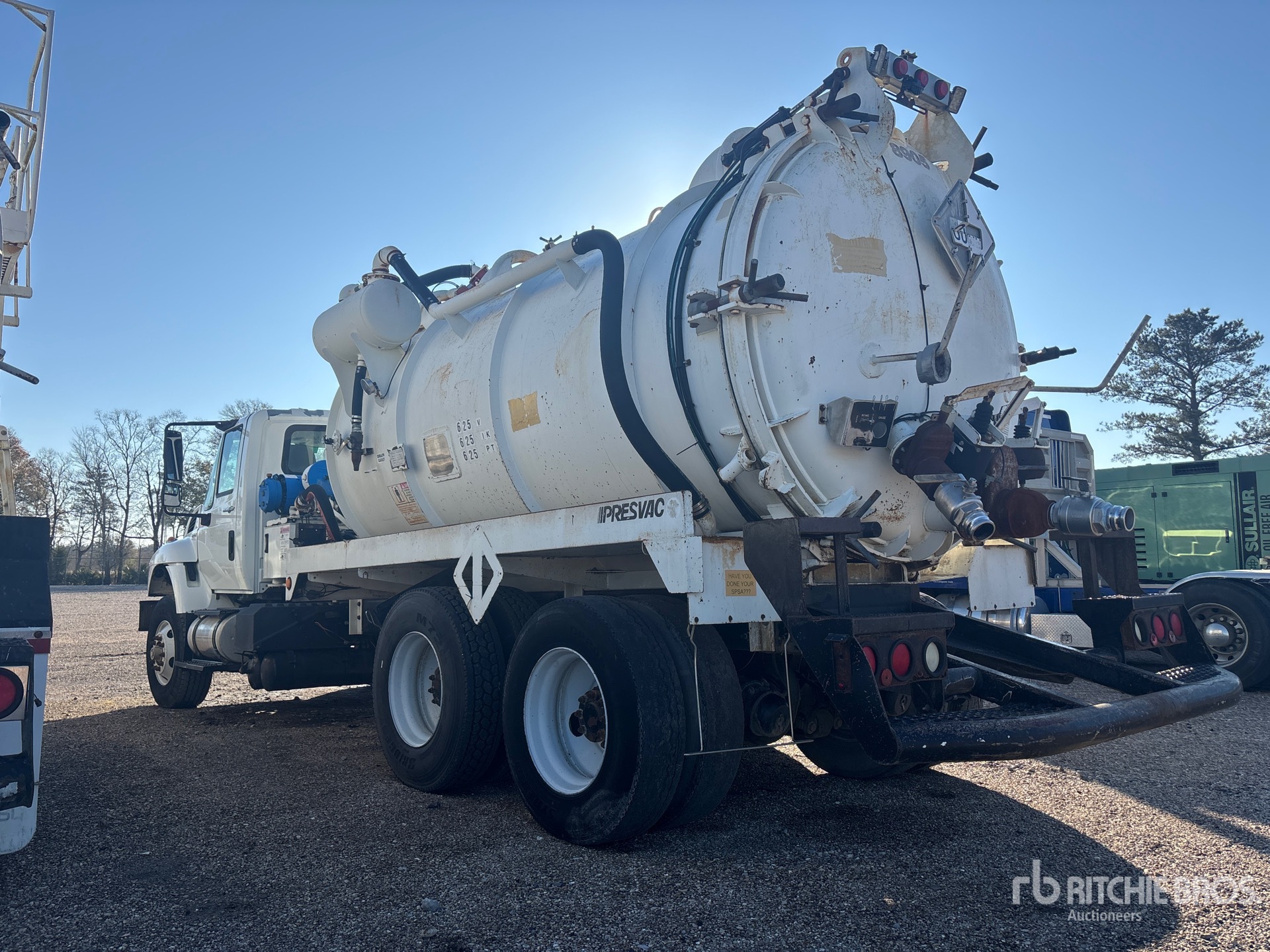 International MaxxForce DT 7.6 L Diesel 300 hp Engine, US EPA Label, 28692 Engine hrs, Eaton Fuller 8LL Manual Transmission, 16000 lb Front Axle, 40000 lb Rears, 56000 lb GVWR, 315/80R22.5 Front Tires, 11R22.5 Rear Tires, Dual Steering Boxes, Double Frame, Hendrickson Spring over Walking Beam Suspension, 224 in Wheelbase, PTO, Steel 3000 gal Debris Tank, TC412 Code, Hoist, Hydraulic Lift Tailgate, Manual Tailgate Locks, Fruitland Hydraulic Driven Pump