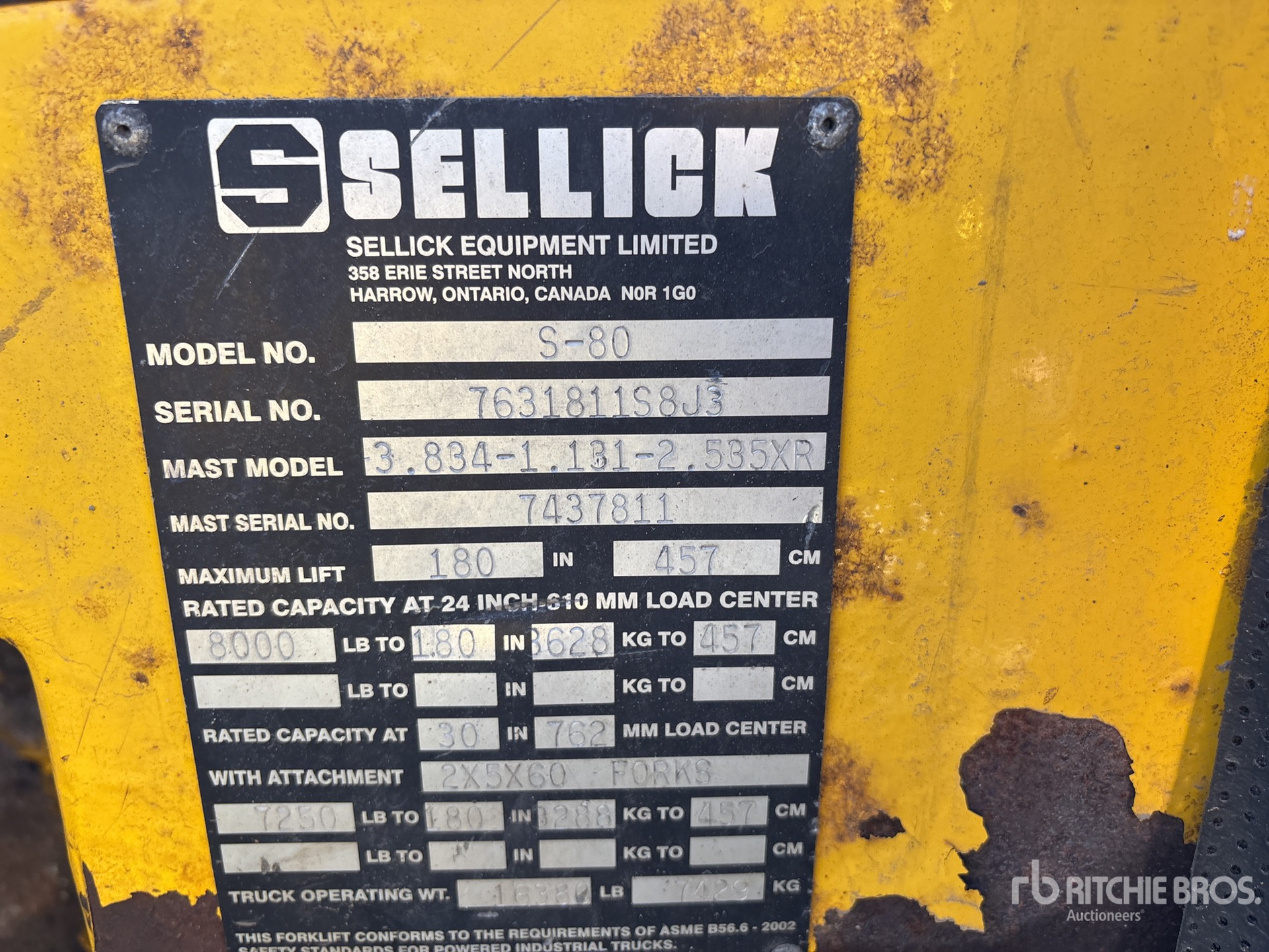 詳細的設備資訊範圍有限,利氏兄弟拍賣行並未檢驗除此處明確規定以外的任何設備部分或組件。除非明確說明,否則我們對設備或其組件不做任何明示或暗示的陳述或保證,包括但不限於有關功能性、符合性或遵守任何適用當局或監管機構的任何安全標準或要求、適合任何特定用途或適銷性的陳述或保證。強烈建議您在投標前自行詳細檢驗設備。