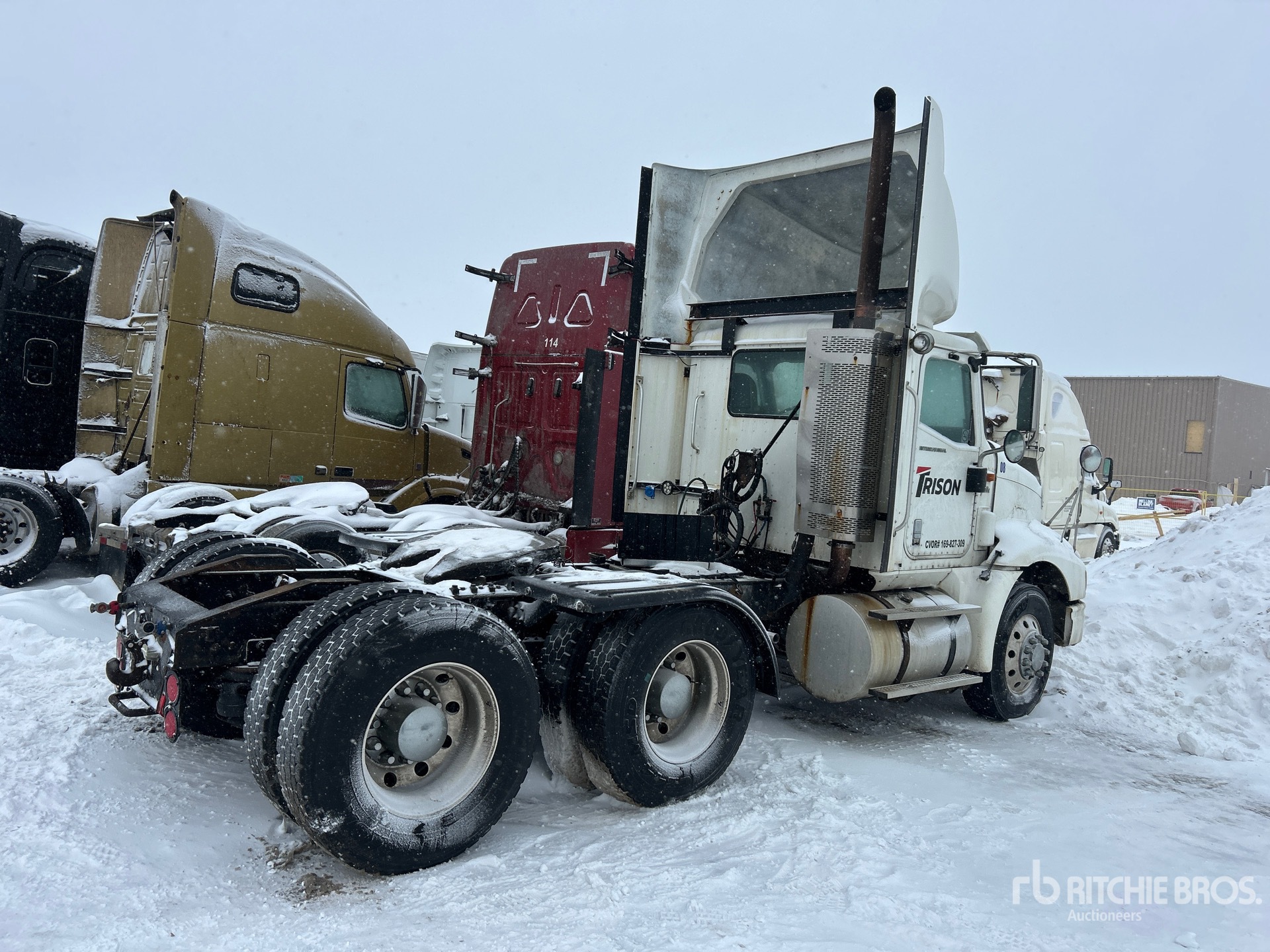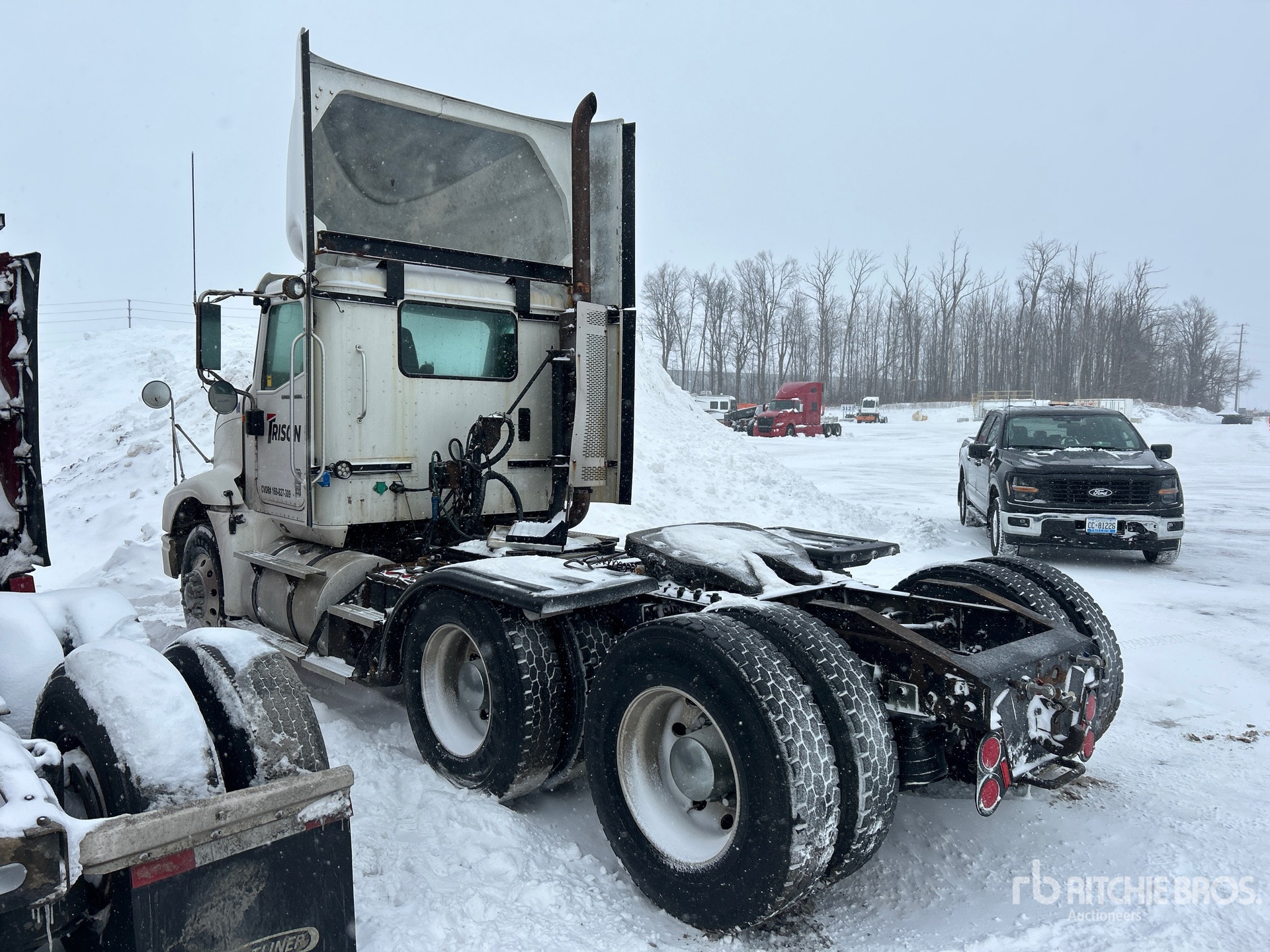 Cummins ISX 435 kW Engine, 2008 US EPA Label, 14935 Engine hrs, Eaton Fuller 13-Speed Manual Transmission, 12000 lb Front Axle, 40000 lb Rears, 52000 lb GVWR, Engine Brake, Differential Lock, 170 in Wheelbase, Air Suspension, Aluminum Wheels, 11R22.5, Air Sliding 5th Wheel, Dual Fuel Tanks