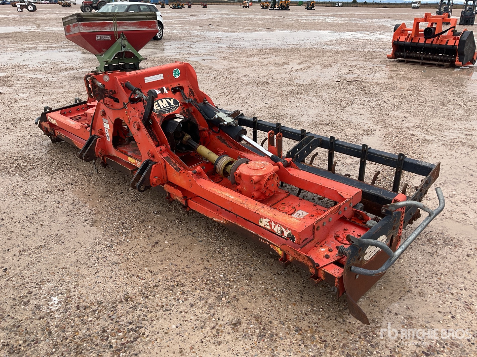 Hydraulic folding rotary harrow with roller.