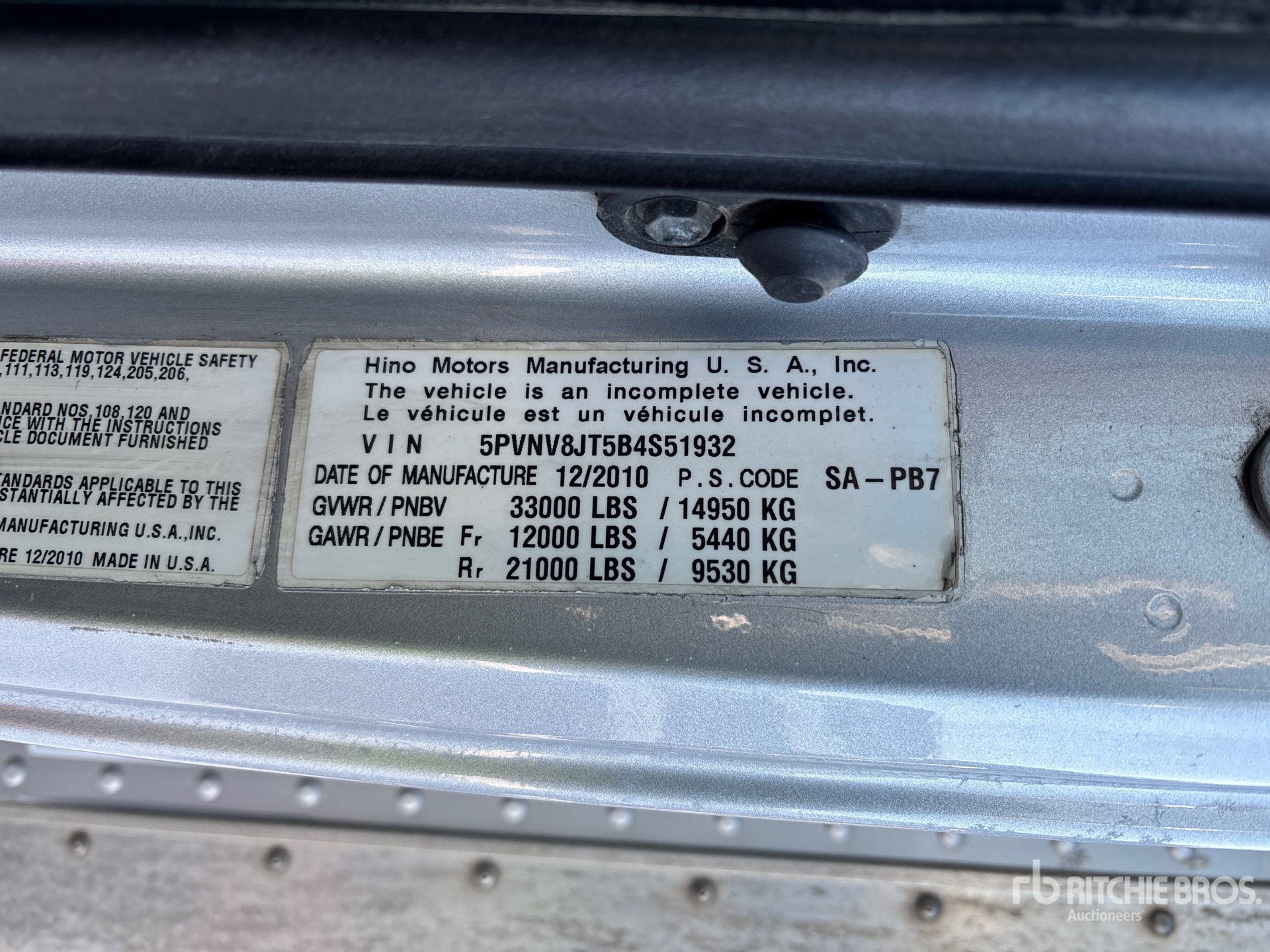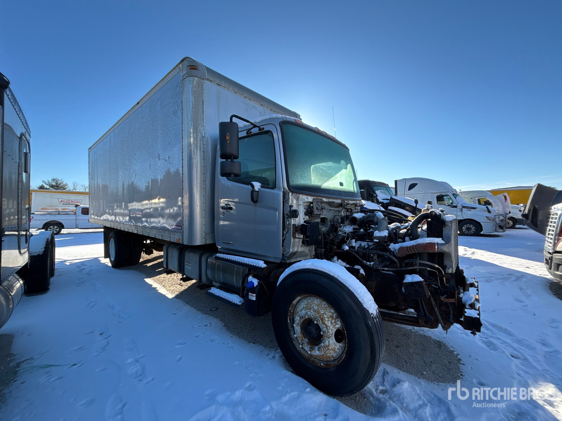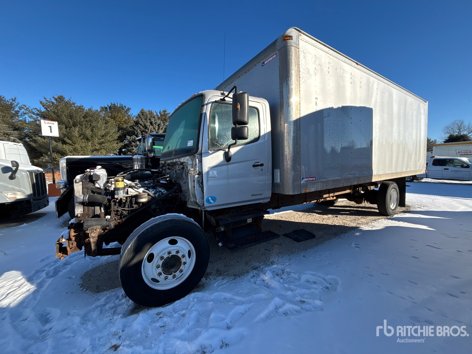 Hino JOBE 6 Cylinder 469 cid Diesel 260 hp Engine, 2010 US EPA Label, Automatic Transmission, 12000 lb Front Axle, 21000 lb Rears, 33000 lb GVWR, 275/80R22.5 Front Tires, 11R22.5 Rear Tires, Spring Suspension, 256 in Wheelbase, Morgan 24 ft x 102 in Wide x 97 in High Body