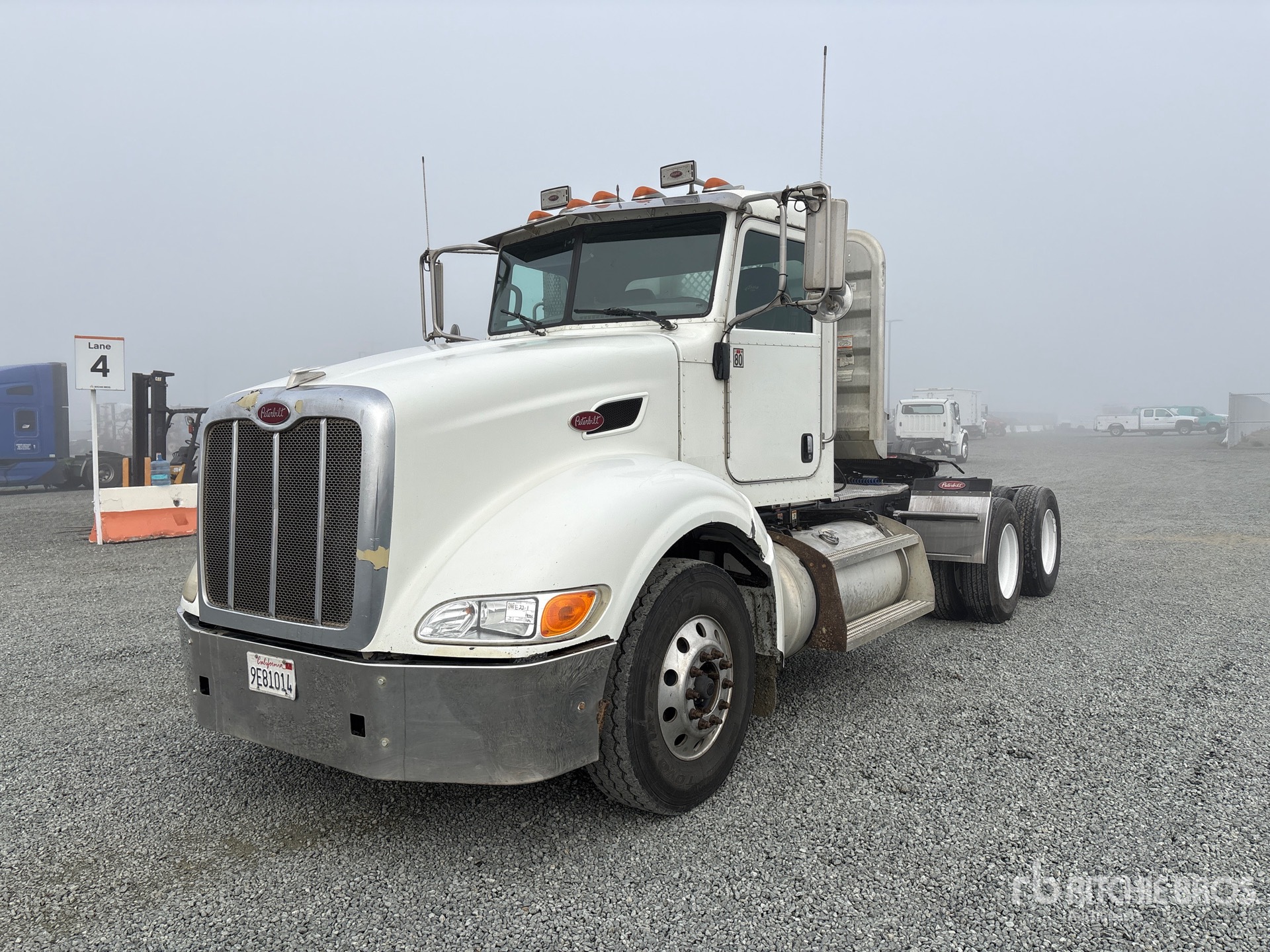 Located in Lane 7 Spot 42, Paccar MX 455 hp Engine, 2010 US EPA Label, 12000 lb Front Axle, 40000 lb Rears, 52000 lb GVWR, Engine Brake, 206 in Wheelbase, Air Suspension, 11R22.5 Front Tires, 295/75R22.5 Rear Tires, Air Sliding 5th Wheel, Headache Rack