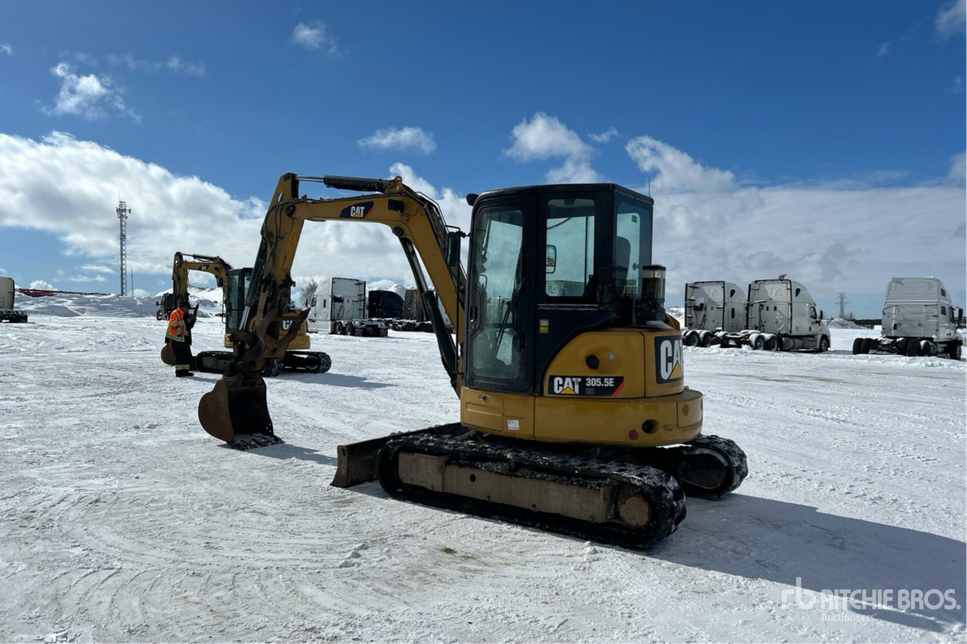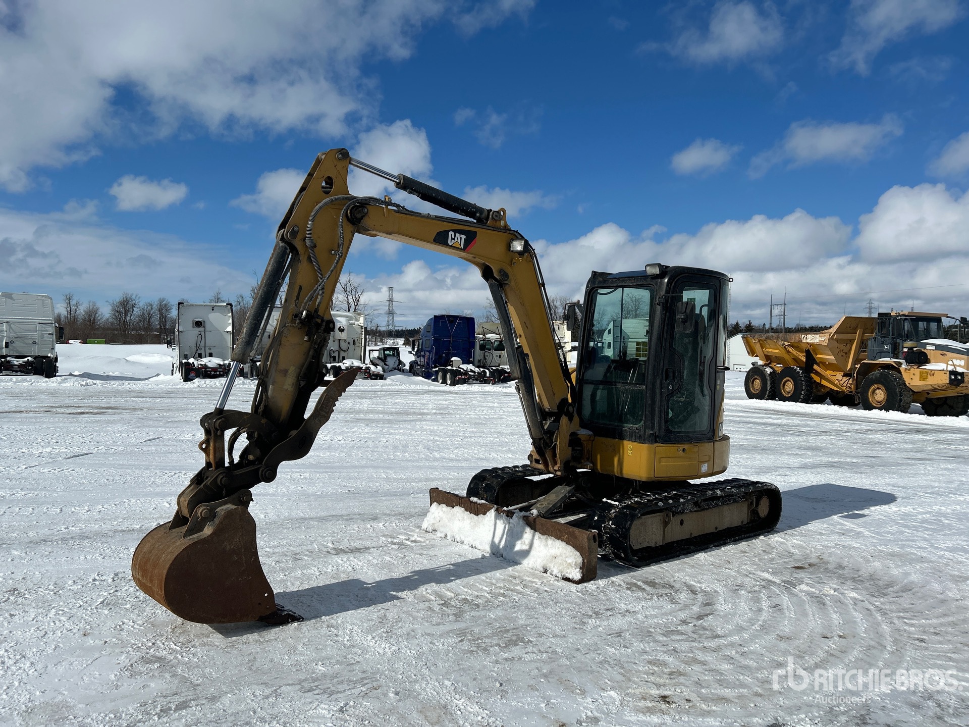 Enclosed Cab, Control Pattern Changer, 2014 US EPA Label, CARB Compliant, Swing Boom, 6 ft 4 in Stick, Auxiliary Hydraulic Plumbing, Backfill Blade, 16 in Rubber Tracks, Manual Quick Coupler, 23 in Digging Bucket, Hydraulic Thumb