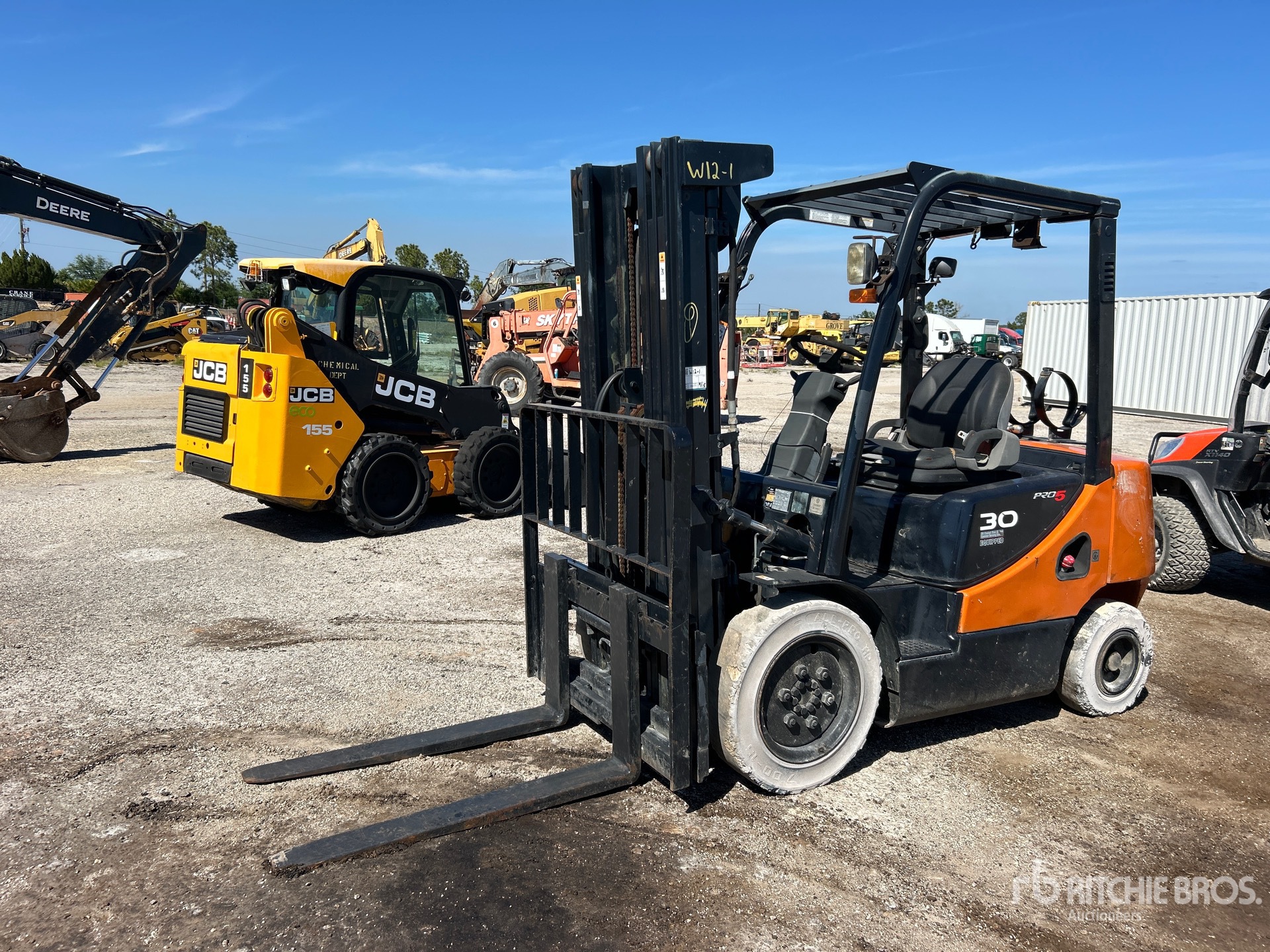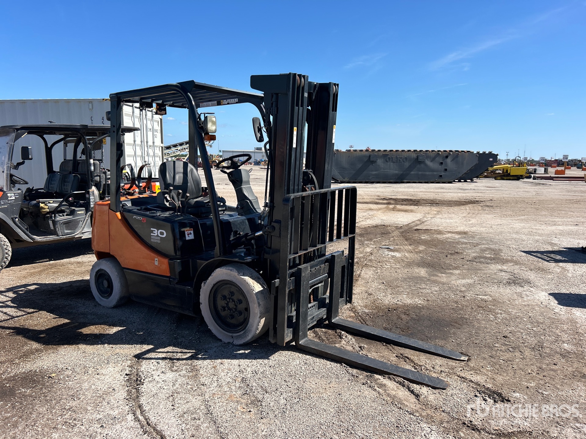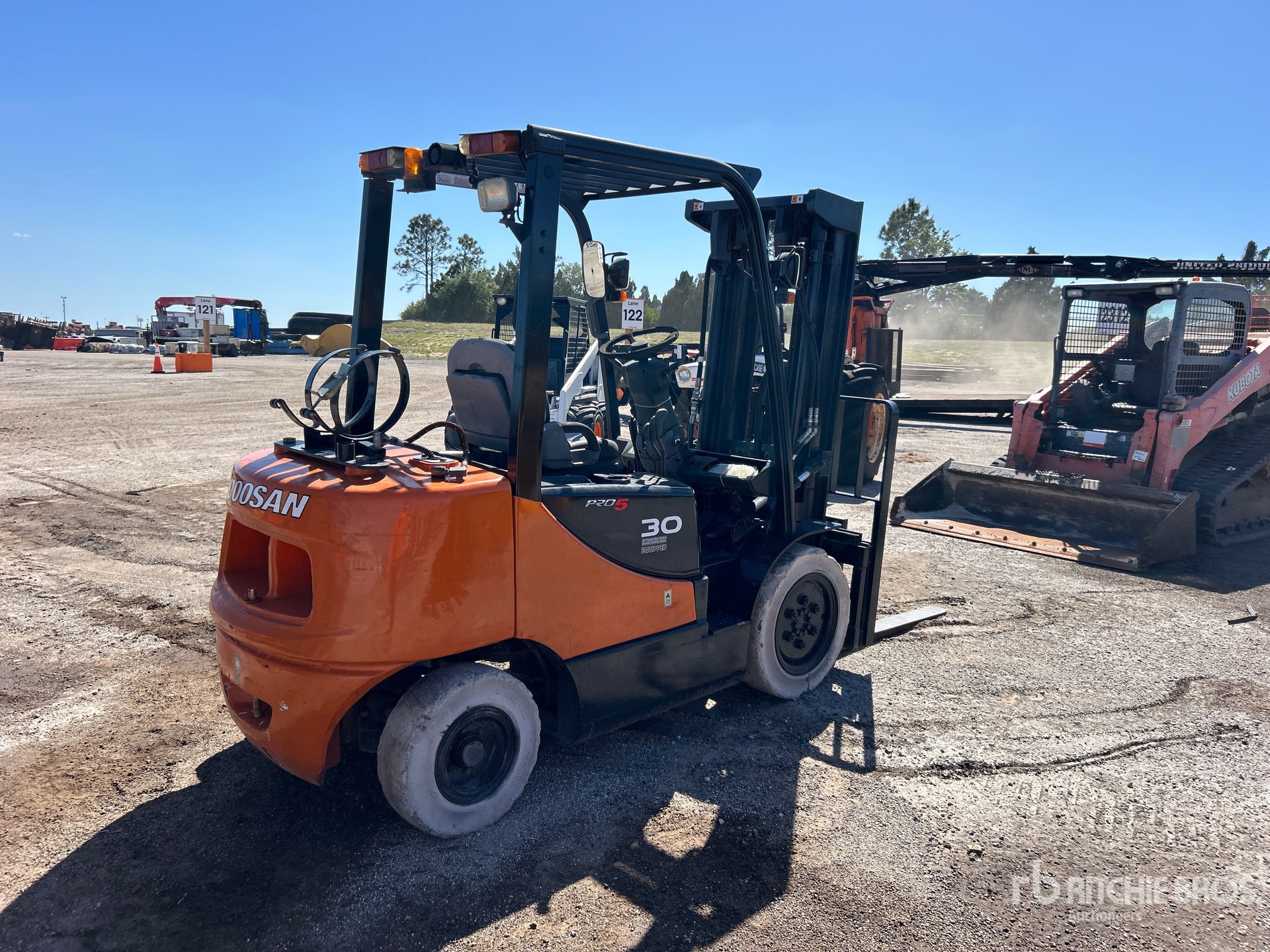 Located in Lane 113 Spot 1, 3 Stage Mast, 189 in Max Lift Height, 85 in Lowered Mast Height, 45 in Forks, Side Shift, Solid Pneumatic Tires, 2014 US EPA Label, GM 4 Cylinder 46.8 kW 2.4 L Dual Fuel Engine