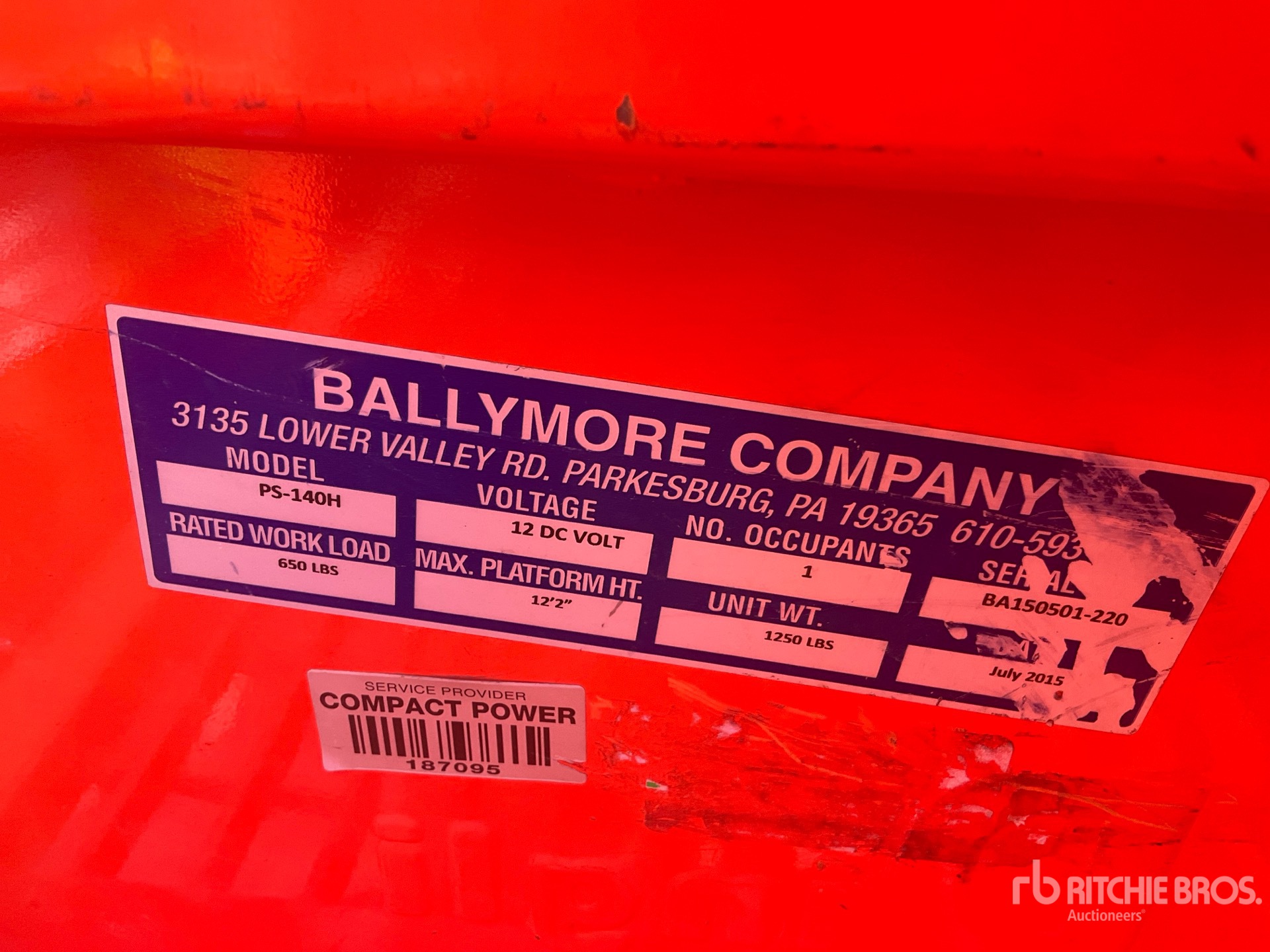 詳細的設備資訊範圍有限,利氏兄弟拍賣行並未檢驗除此處明確規定以外的任何設備部分或組件。除非明確說明,否則我們對設備或其組件不做任何明示或暗示的陳述或保證,包括但不限於有關功能性、符合性或遵守任何適用當局或監管機構的任何安全標準或要求、適合任何特定用途或適銷性的陳述或保證。強烈建議您在投標前自行詳細檢驗設備。