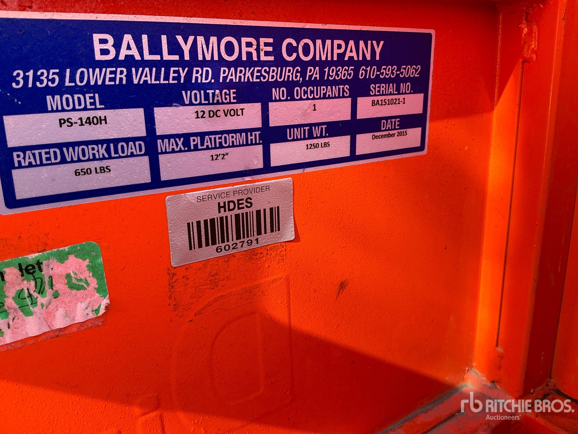 詳細的設備資訊範圍有限,利氏兄弟拍賣行並未檢驗除此處明確規定以外的任何設備部分或組件。除非明確說明,否則我們對設備或其組件不做任何明示或暗示的陳述或保證,包括但不限於有關功能性、符合性或遵守任何適用當局或監管機構的任何安全標準或要求、適合任何特定用途或適銷性的陳述或保證。強烈建議您在投標前自行詳細檢驗設備。