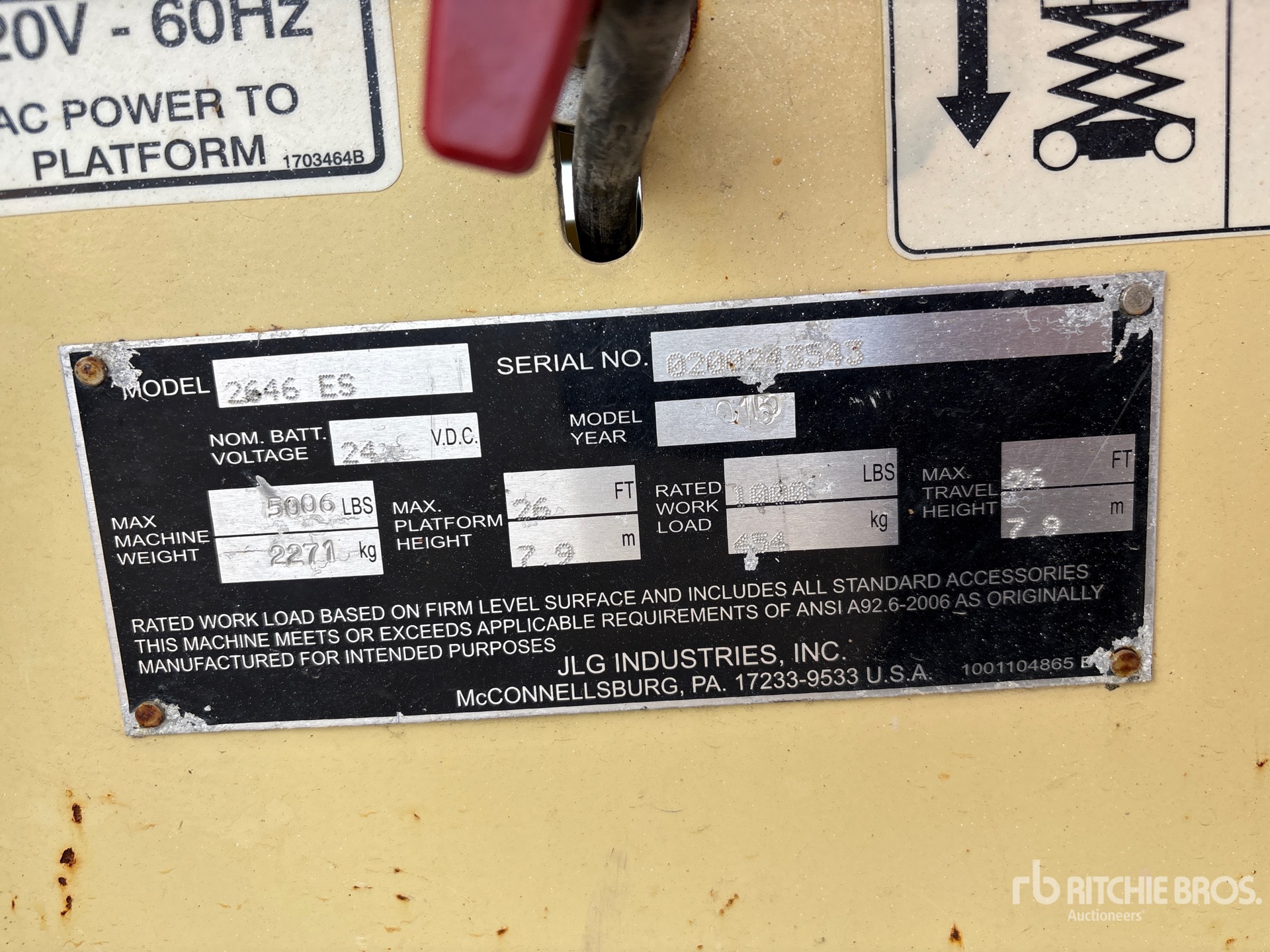 詳細的設備資訊範圍有限,利氏兄弟拍賣行並未檢驗除此處明確規定以外的任何設備部分或組件。除非明確說明,否則我們對設備或其組件不做任何明示或暗示的陳述或保證,包括但不限於有關功能性、符合性或遵守任何適用當局或監管機構的任何安全標準或要求、適合任何特定用途或適銷性的陳述或保證。強烈建議您在投標前自行詳細檢驗設備。