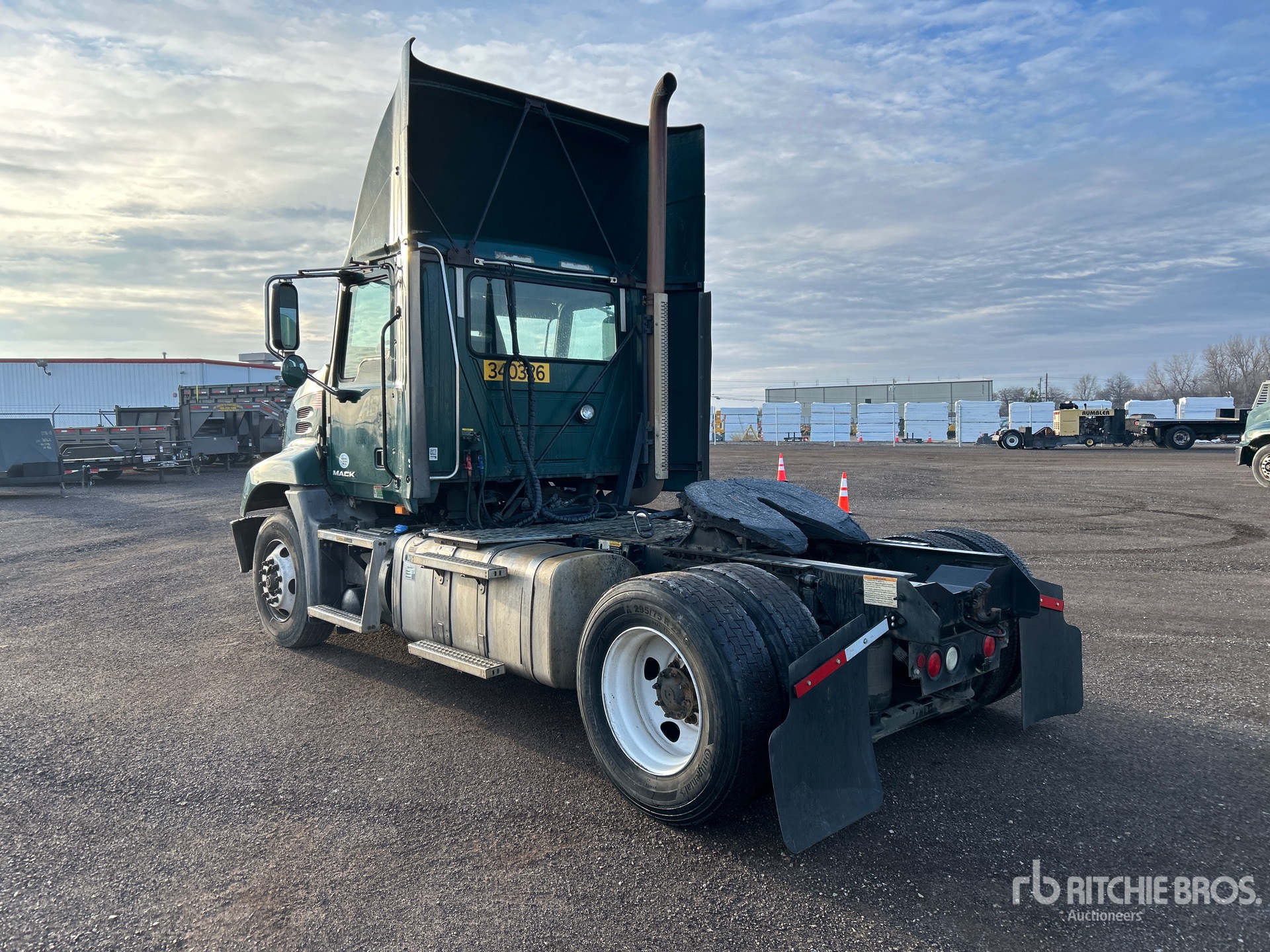 Mack MP7 335 hp Engine, 2015 US EPA Label, 18744 Engine hrs, Eaton Fuller 10-Speed Manual Transmission, 12000 lb Front Axle, 20000 lb Rears, 32000 lb GVWR, Engine Brake, 154 in Wheelbase, Air Suspension, 275/80R22.5 Front Tires, 295/75R22.5 Rear Tires, Dual Fuel Tanks