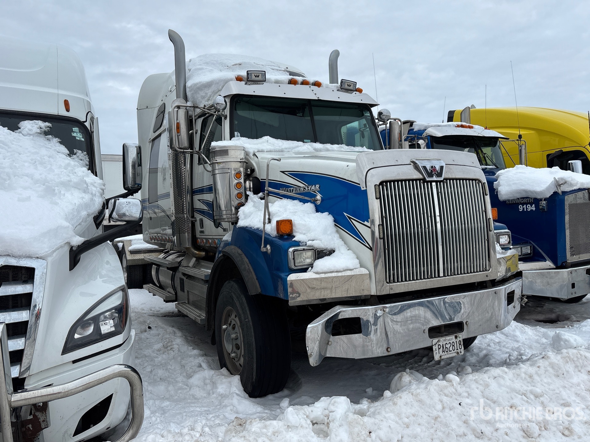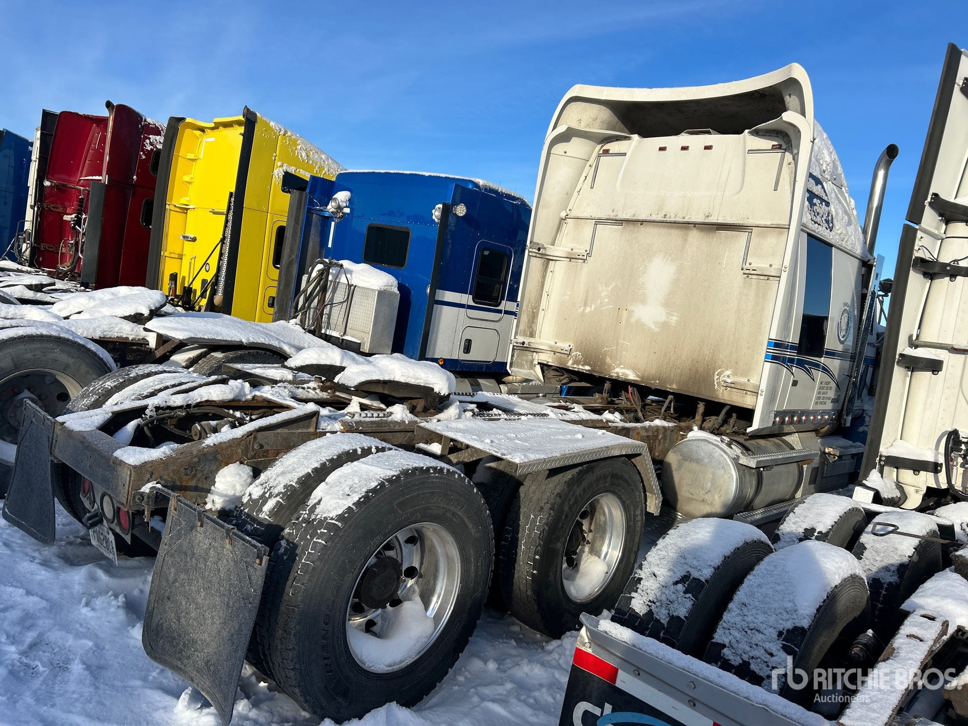 Located in Lane 22 Spot 64, Detroit DD16 600 hp Engine, 2014 US EPA Label, 18394 Engine hrs, Eaton Fuller RTLO-18918B 18-Speed Manual Transmission, 18000 lb Front Axle, 52000 lb Rears, 88000 lb GVWR, Engine Brake, Differential Lock, 72 in Mid Roof Sleeper Cab, 265 in Wheelbase, Air Suspension, Aluminum Wheels, 385/65R22.5 Front Tires, 11R22.5 Rear Tires, Air Sliding 5th Wheel, Dual Fuel Tanks