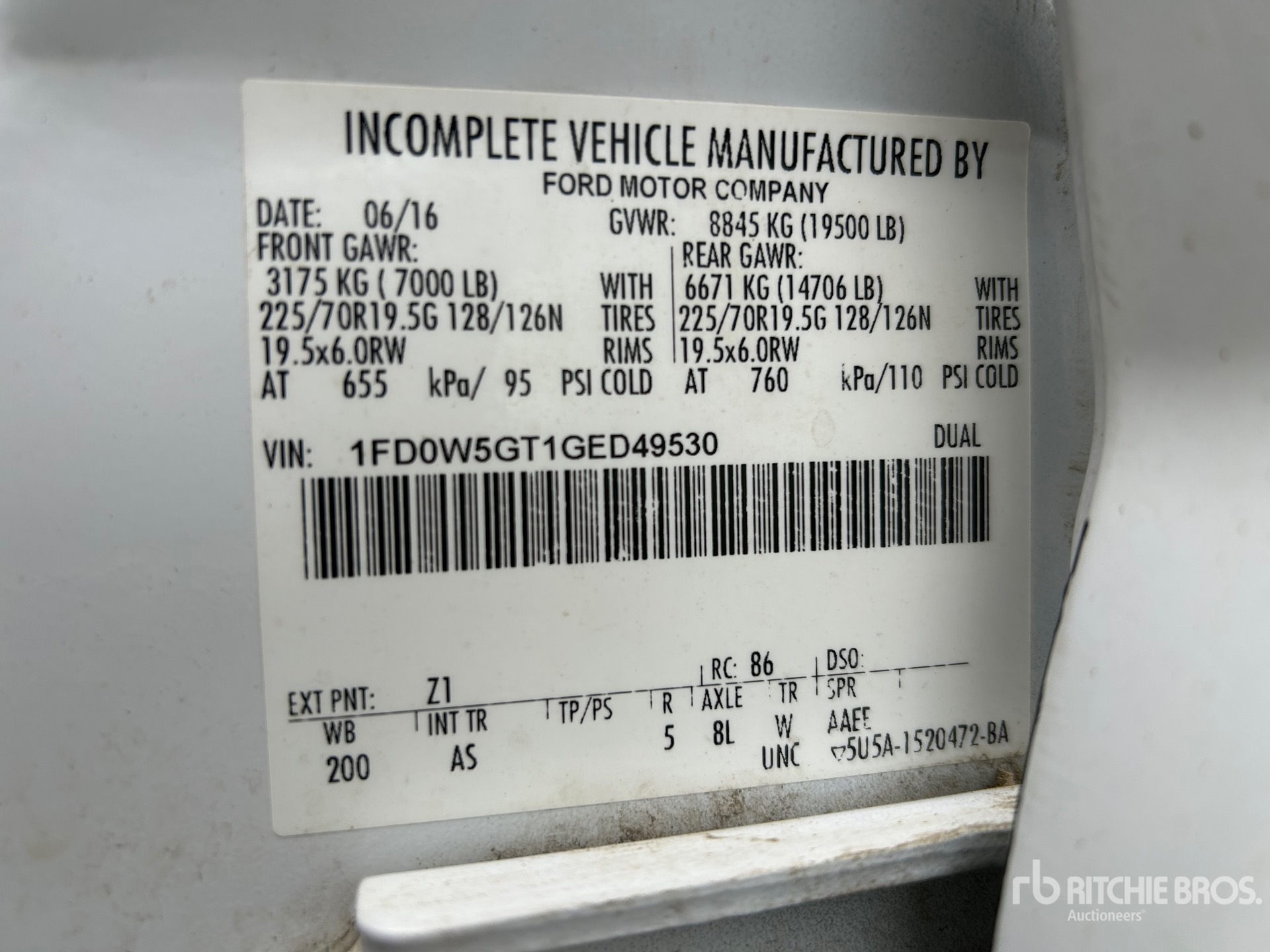 Ford 4V F-Series V8 6.7 L Diesel Engine, 2016 US EPA Label, Requires Diesel Exhaust Fluid, 8314 Engine hrs, Automatic Transmission, 7000 lb Front Axle, 14706 lb Rears, 19500 lb GVWR, Steel Wheels, 225/70R19.5 Front Tires, 225/70R19.5 Rear Tires, Spring Suspension, 200 in Wheelbase, Reading 11 ft Body