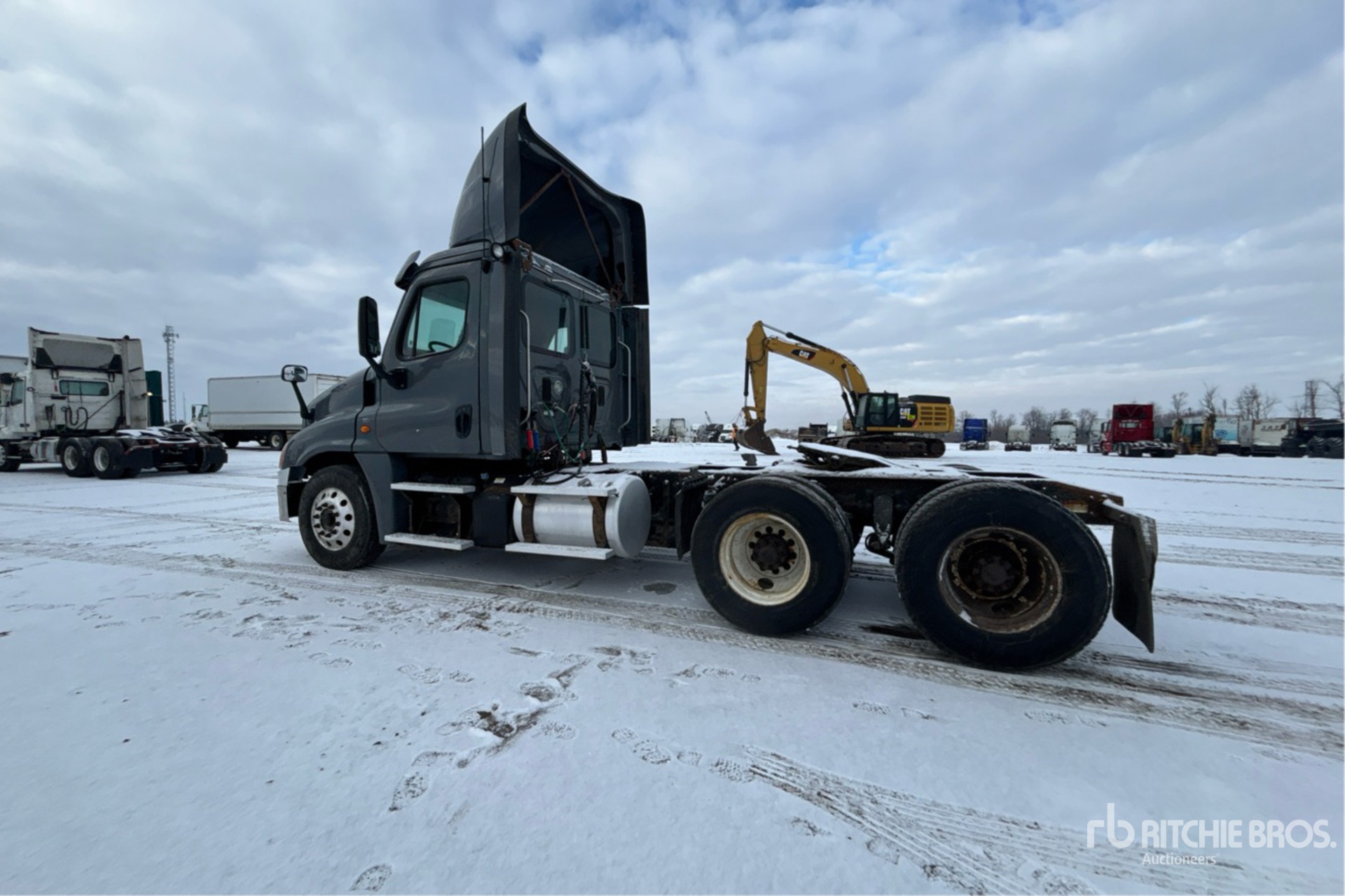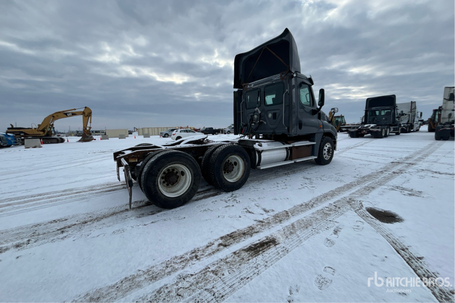 Located in Lane 10 Spot 14, Cummins ISX15 450 hp Engine, 2015 US EPA Label, 17704 Engine hrs, Eaton Fuller FO-18E313A-MHP Automatic Transmission, 14600 lb Front Axle, 40000 lb Rears, 54600 lb GVWR, Engine Brake, 187 in Wheelbase, Air Suspension, Aluminum Wheels, 295/75R22.5, Air Sliding 5th Wheel, Dual Fuel Tanks, NOTICE-TO-US-BIDDERS: this asset is likely exempt from US import tariffs as it was manufactured in the US. Bidders are responsible for confirming with their customs broker