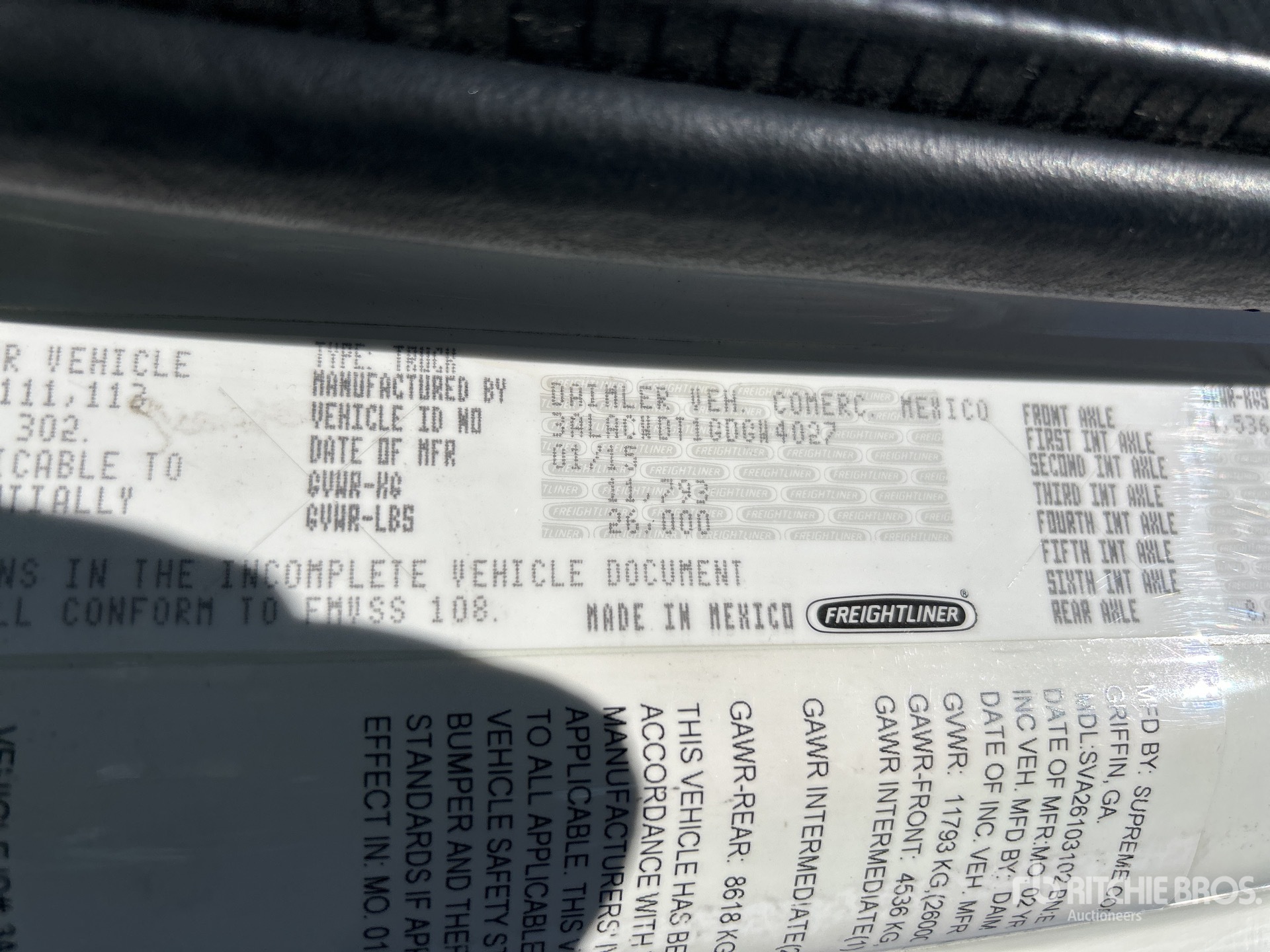 Cummins ISB 6 Cylinder 6.7 L Diesel 220 hp Engine, Allison 2200 Automatic Transmission, 10000 lb Front Axle, 19000 lb Rears, Detroit DA-RS-19.0-4 Drive Axles, 5.56:1 Axle Ratio, 26000 lb GVWR, 11R22.5, Spring Suspension, 270 in Wheelbase, Supreme 26 ft x 102 in Wide x 103 in High Body
