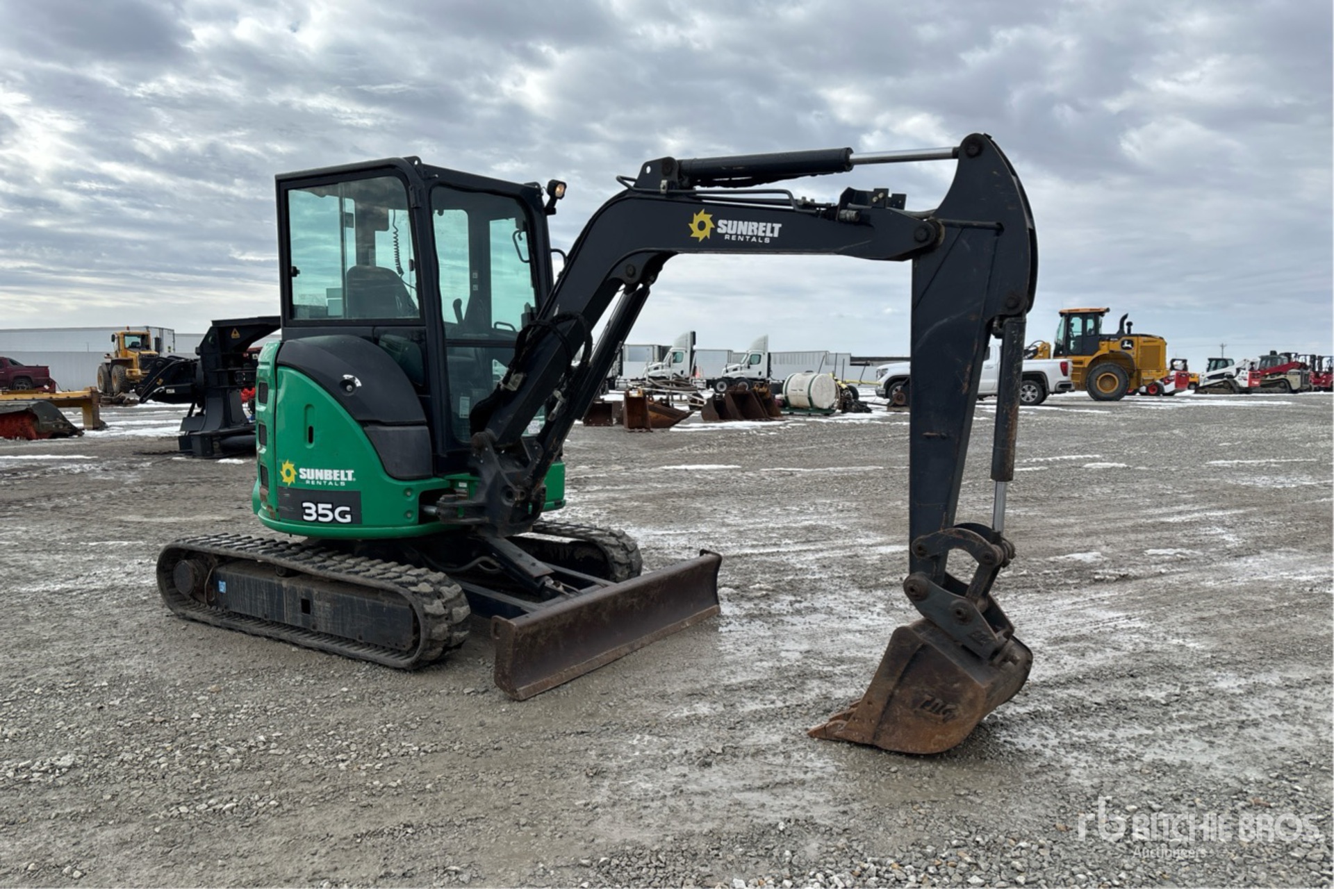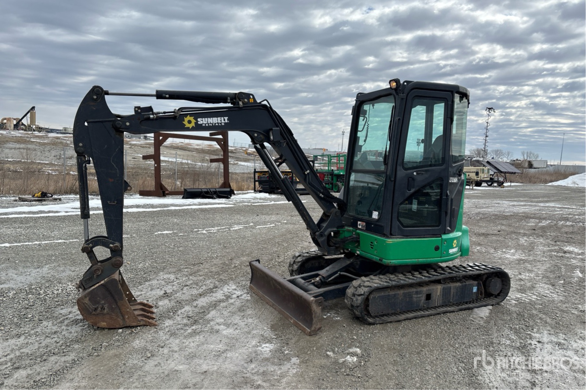 Enclosed Cab, Air Conditioner, Swing Boom, 4 ft 6 in Stick, Auxiliary Hydraulic Plumbing, Backfill Blade, 12 in Rubber Tracks, 23 in Digging Bucket, Thumb Bracket