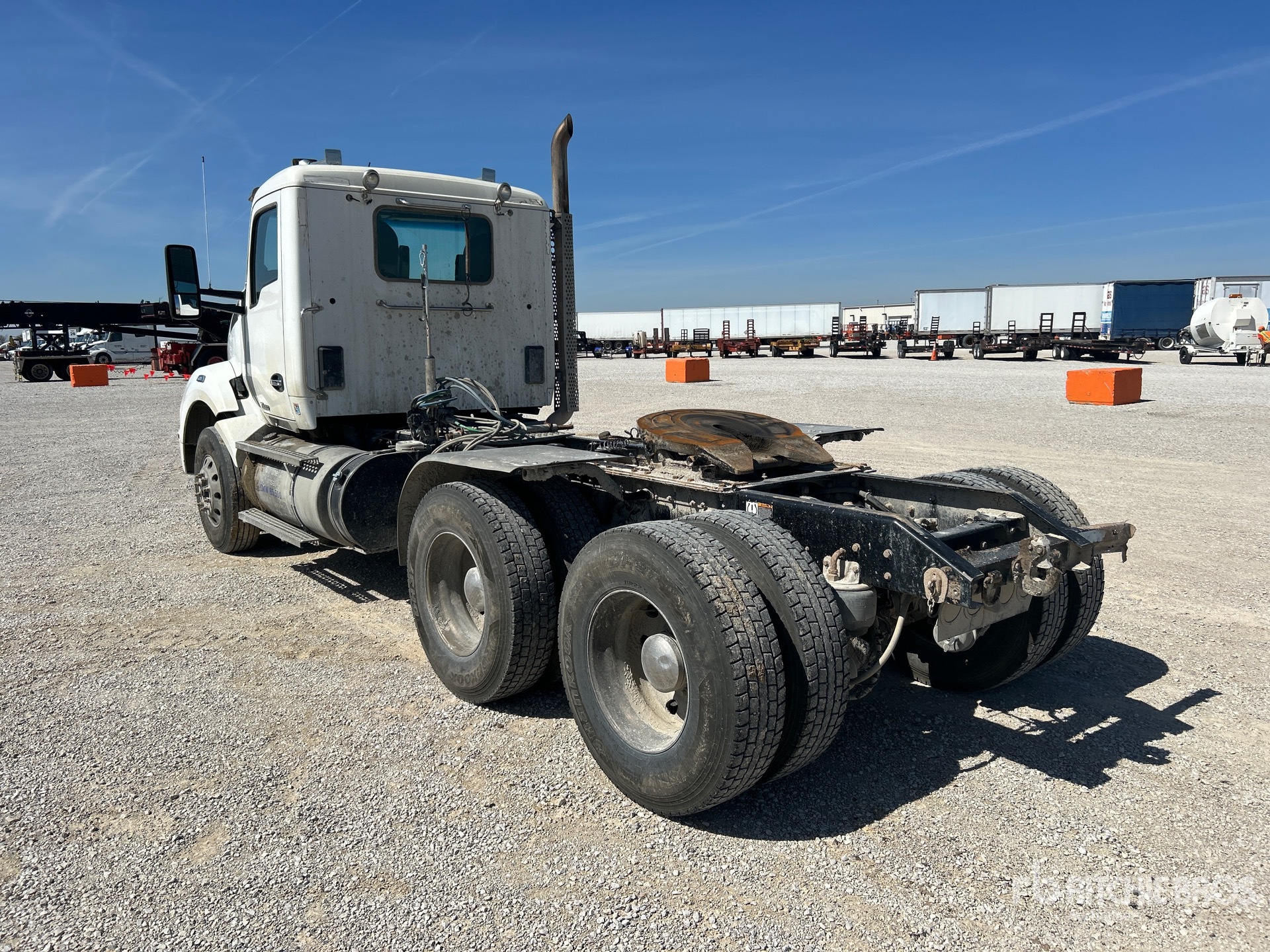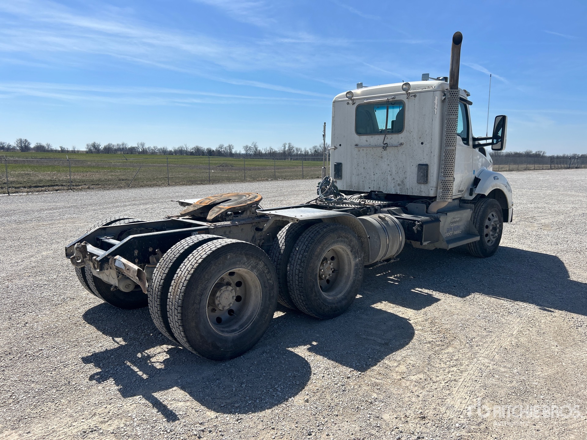 Paccar MX-13 485 hp Engine, 2015 US EPA Label, 19901 Engine hrs, Eaton Fuller FO16E313A-VHP Automated Transmission, 13200 lb Front Axle, Dana D46-170H Drive Axles, 3.58:1 Axle Ratio, 46000 lb Rears, 59200 lb GVWR, Engine Brake, 192 in Wheelbase, 8-Bag Air Suspension, Aluminum Wheels, 11R22.5, Wet Kit, Air Sliding 5th Wheel