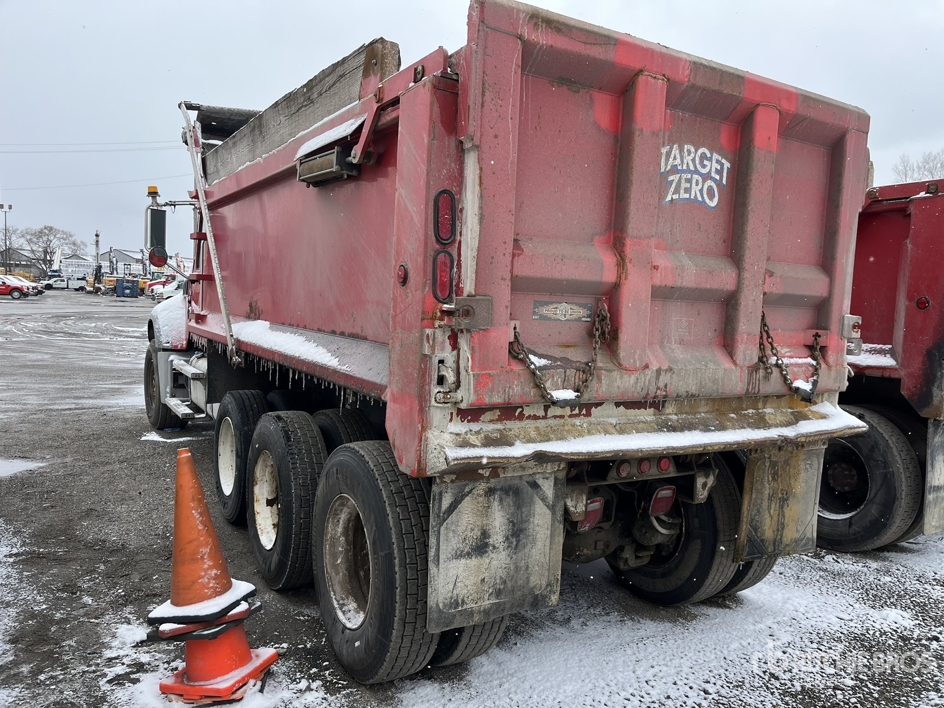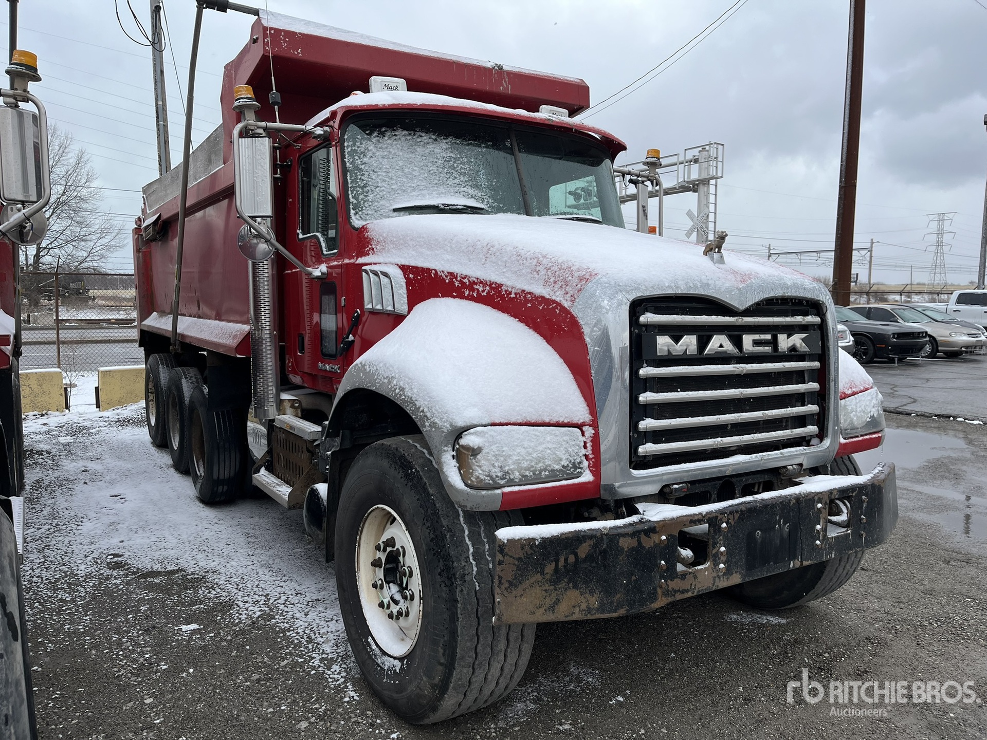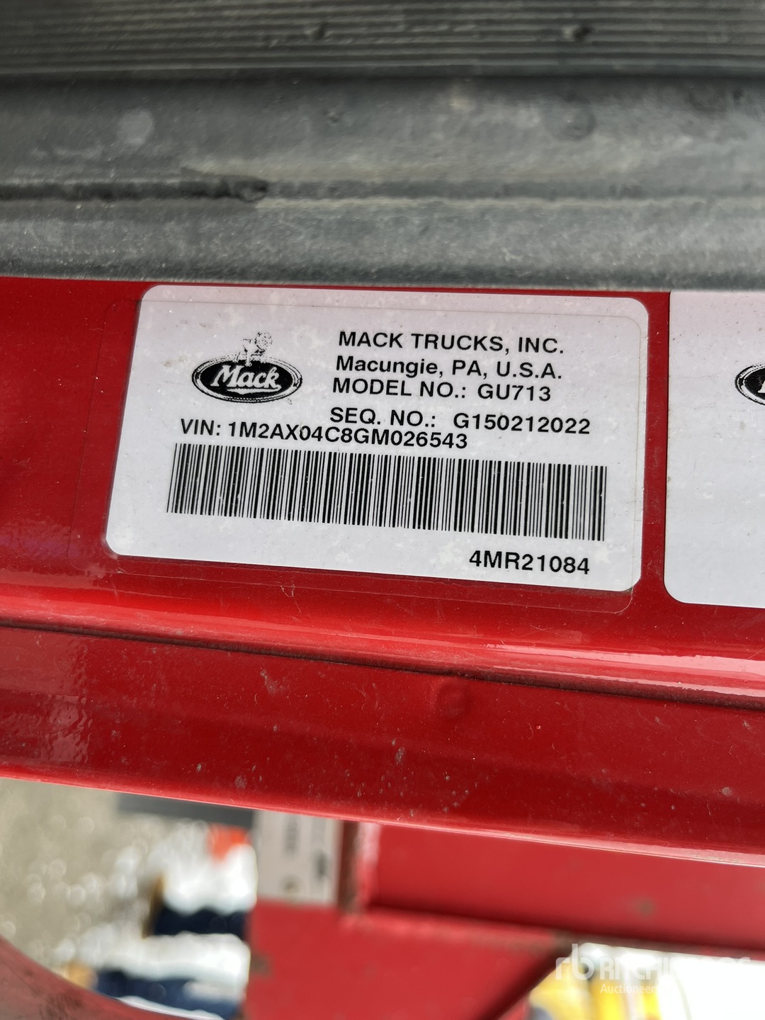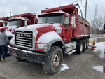 Mack MP7 10.8 L Diesel 395 hp Engine, Mack MAXITORQUE ES 8-Speed Manual Transmission, Differential Lock, 20000 lb Front Axle, 46000 lb Rears, 425/65R22.5 Front Tires, 11R22.5 Rear Tires, Air Lift Pusher Axle, Air Lift Tag Axle, Dual Steering Boxes, Double Frame, Spring Suspension, 230 in Wheelbase, PTO, 16 ft Long Steel Body, 15 cyd, Capacity, Electric Roll Tarp, Rear Hydraulics