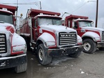 Mack MP7 10.8 L Diesel 395 hp Engine, 18018 Engine hrs, Engine Brake, Mack MAXITORQUE ES 8-Speed Manual Transmission, Differential Lock, 20000 lb Front Axle, 46000 lb Rears, 425/65R22.5, Air Lift Pusher Axle, Dual Steering Boxes, Double Frame, Spring Suspension, 230 in Wheelbase, PTO, Wet Kit, American 16 ft Long Steel Body, 15 cyd, Capacity, Round Bottom, Electric Roll Tarp, Rear Hydraulics