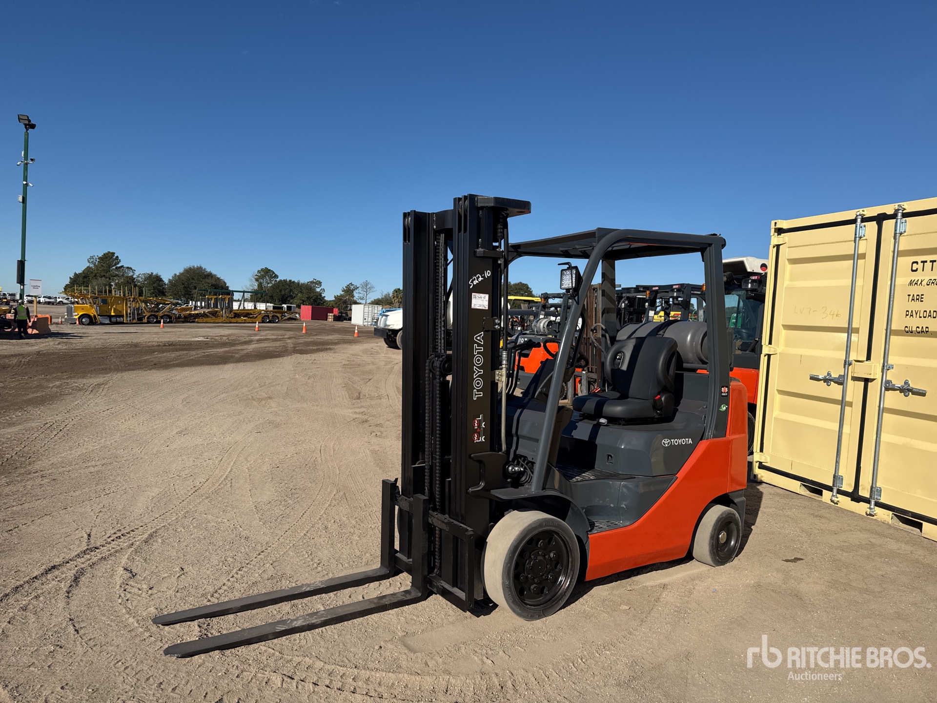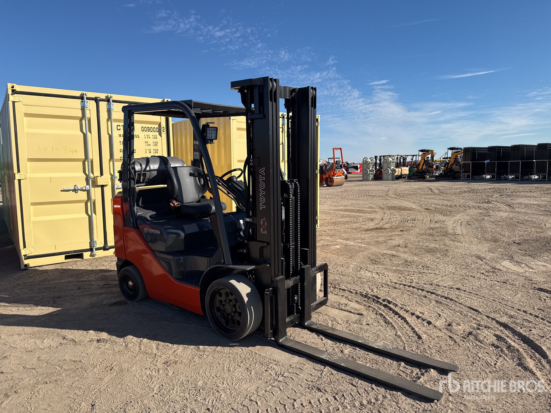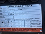 3 Stage Mast, Full Free Lift, 189 in Max Lift Height, 82 in Lowered Mast Height, 48 in Forks, 2016 US EPA Label, Toyota 4YECS 4 Cylinder 2.2 L LPG Engine