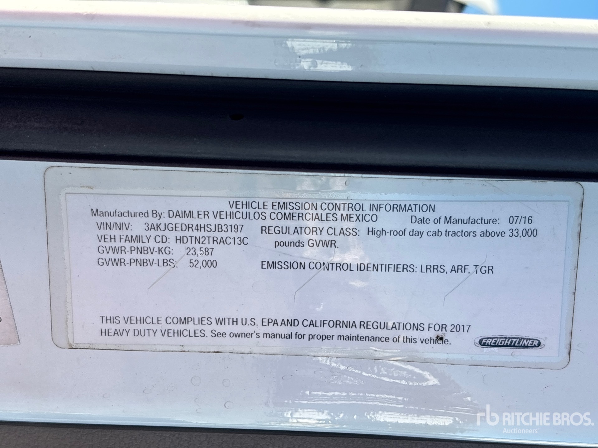 Detroit DD15 455 hp Engine, 2016 US EPA Label, 17781 Engine hrs, Detroit DT12-OA-1650 12-Speed Automated Transmission, 12000 lb Front Axle, 40000 lb Rears, 52000 lb GVWR, Engine Brake, 180 in Wheelbase, Air Suspension, 295/75R22.5, Air Sliding 5th Wheel, Dual Fuel Tanks