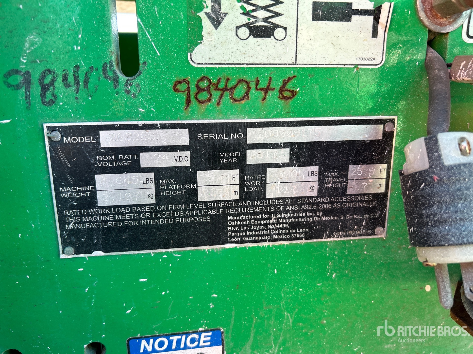 詳細的設備資訊範圍有限,利氏兄弟拍賣行並未檢驗除此處明確規定以外的任何設備部分或組件。除非明確說明,否則我們對設備或其組件不做任何明示或暗示的陳述或保證,包括但不限於有關功能性、符合性或遵守任何適用當局或監管機構的任何安全標準或要求、適合任何特定用途或適銷性的陳述或保證。強烈建議您在投標前自行詳細檢驗設備。
