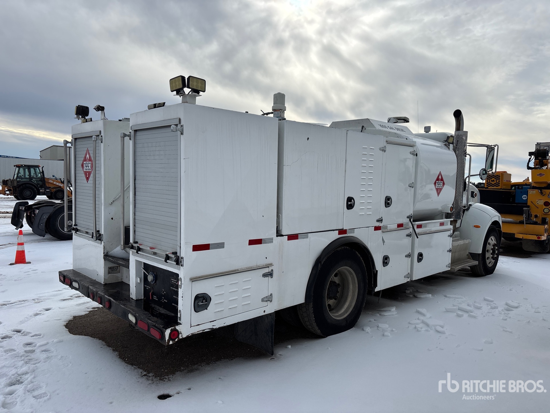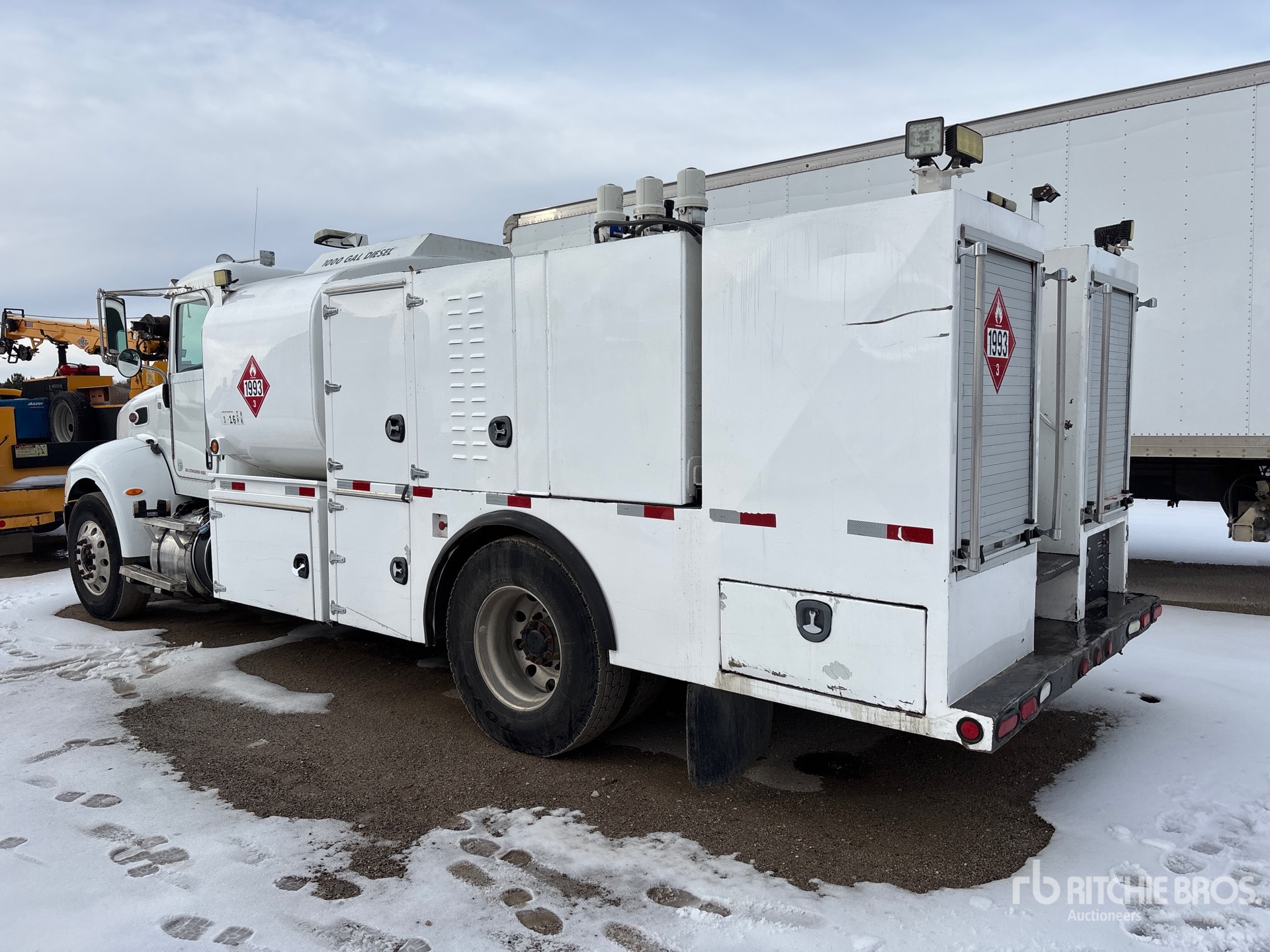 Paccar PX-9 6 Cylinder 8.9 L 330 hp Engine, 2015 US EPA Label, Requires Diesel Exhaust Fluid, 4997 Engine hrs, Allison 3500 Automatic Transmission, 12000 lb Front Axle, 21000 lb Rears, 5.25:1 Axle Ratio, 33000 lb GVWR, 11R22.5, Reyco Spring Suspension, 190 in Wheelbase, PTO, 11 ft 8 in Body, 1000 gal Diesel Tank, DEF Tank, Grease Barrel, Ingersoll-Rand 2475 Hydraulic Air Compressor, Air Hose Reel