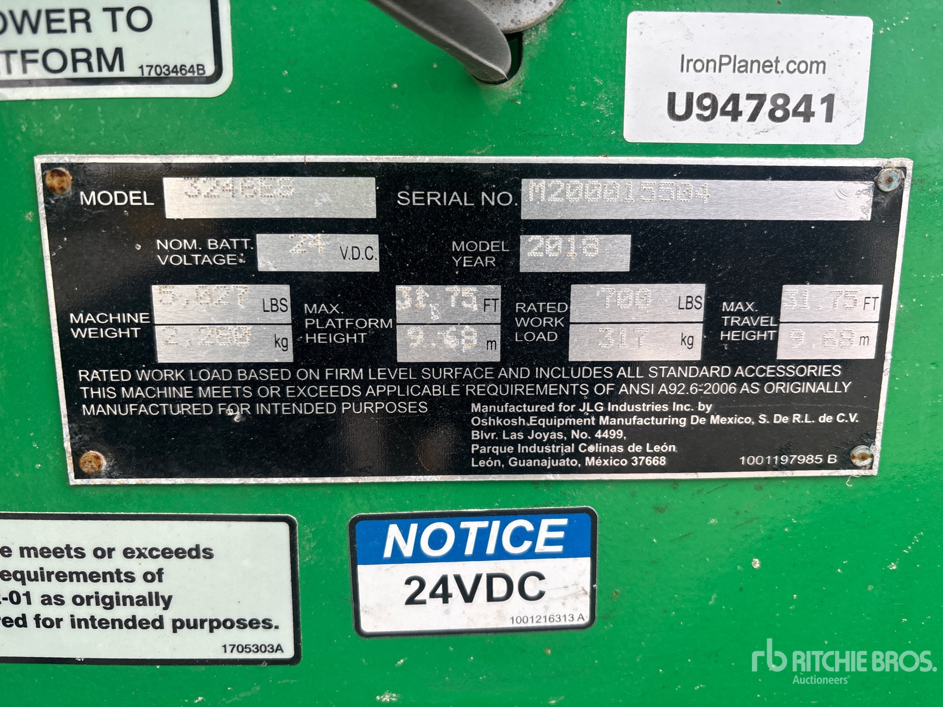 Please Be Aware That All Aerial Equipment Requires A Self-Supplied Safety Harness And Trained Personnel To Operate On All Ritchie Bros. Properties - On Lifts ;