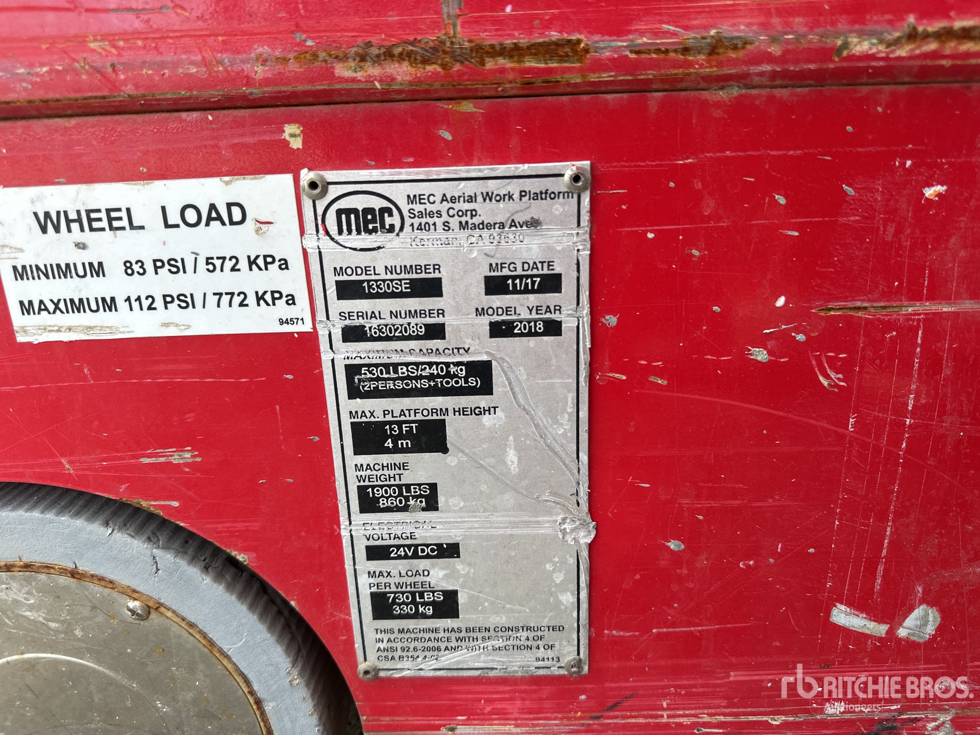 詳細的設備資訊範圍有限,利氏兄弟拍賣行並未檢驗除此處明確規定以外的任何設備部分或組件。除非明確說明,否則我們對設備或其組件不做任何明示或暗示的陳述或保證,包括但不限於有關功能性、符合性或遵守任何適用當局或監管機構的任何安全標準或要求、適合任何特定用途或適銷性的陳述或保證。強烈建議您在投標前自行詳細檢驗設備。