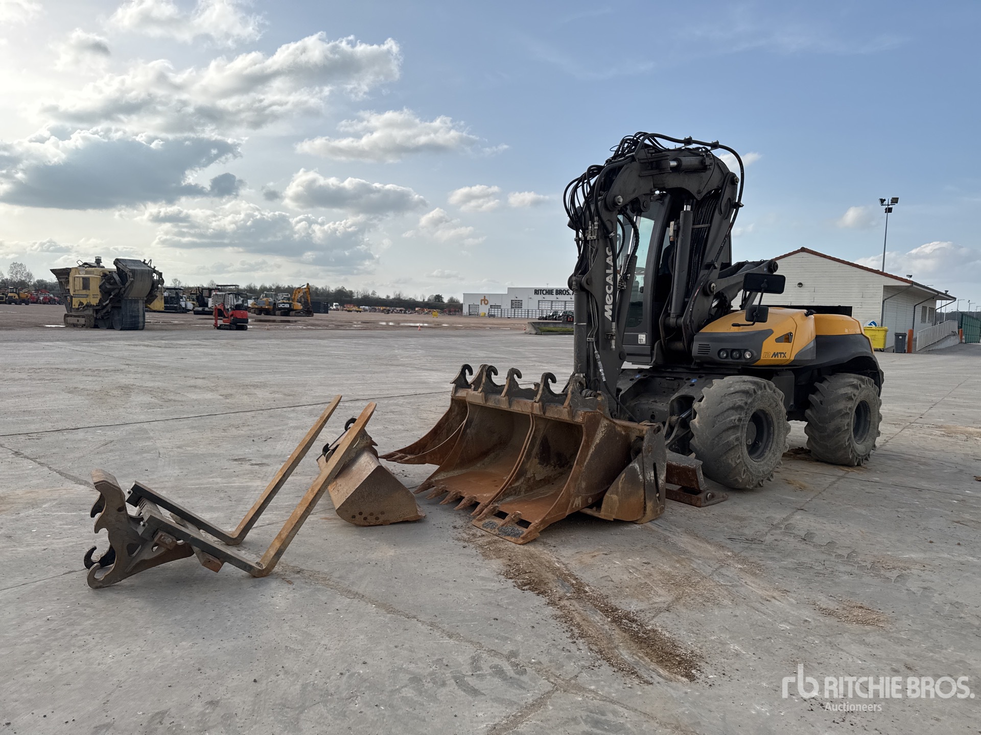 Rear & Side View Cameras, Requires AdBlue, Variable Angle Swing Boom, 2200 mm Stick, Auxiliary Hydraulic Plumbing, Stick Check Valve, Boom Check Valves, Stabilizers, 18x19.5 Tires, Hydraulic Quick Coupler, 2200 mm Multi Purpose Bucket, Additional 3 Digging , 1 Fork , 1 Cleanup Bucket