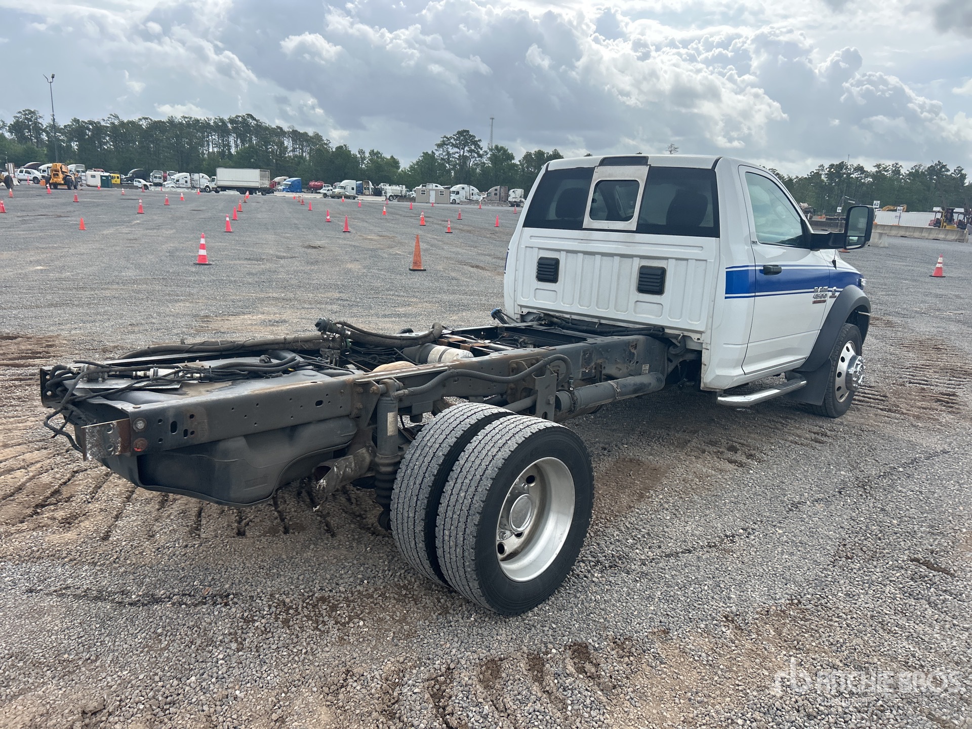 Dodge Cummins 6 Cylinder 6.7 L Diesel Engine, 2018 US EPA Label, Requires Diesel Exhaust Fluid, Exhaust Brake, Automatic Transmission, 7000 lb Front Axle, 12000 lb Rears, 16500 lb GVWR, Aluminum Outer Wheels, 225/70R19.5, Spring Suspension, 170 in Wheelbase, 86 in Cab to Axle, 137 in Cab to End of Frame