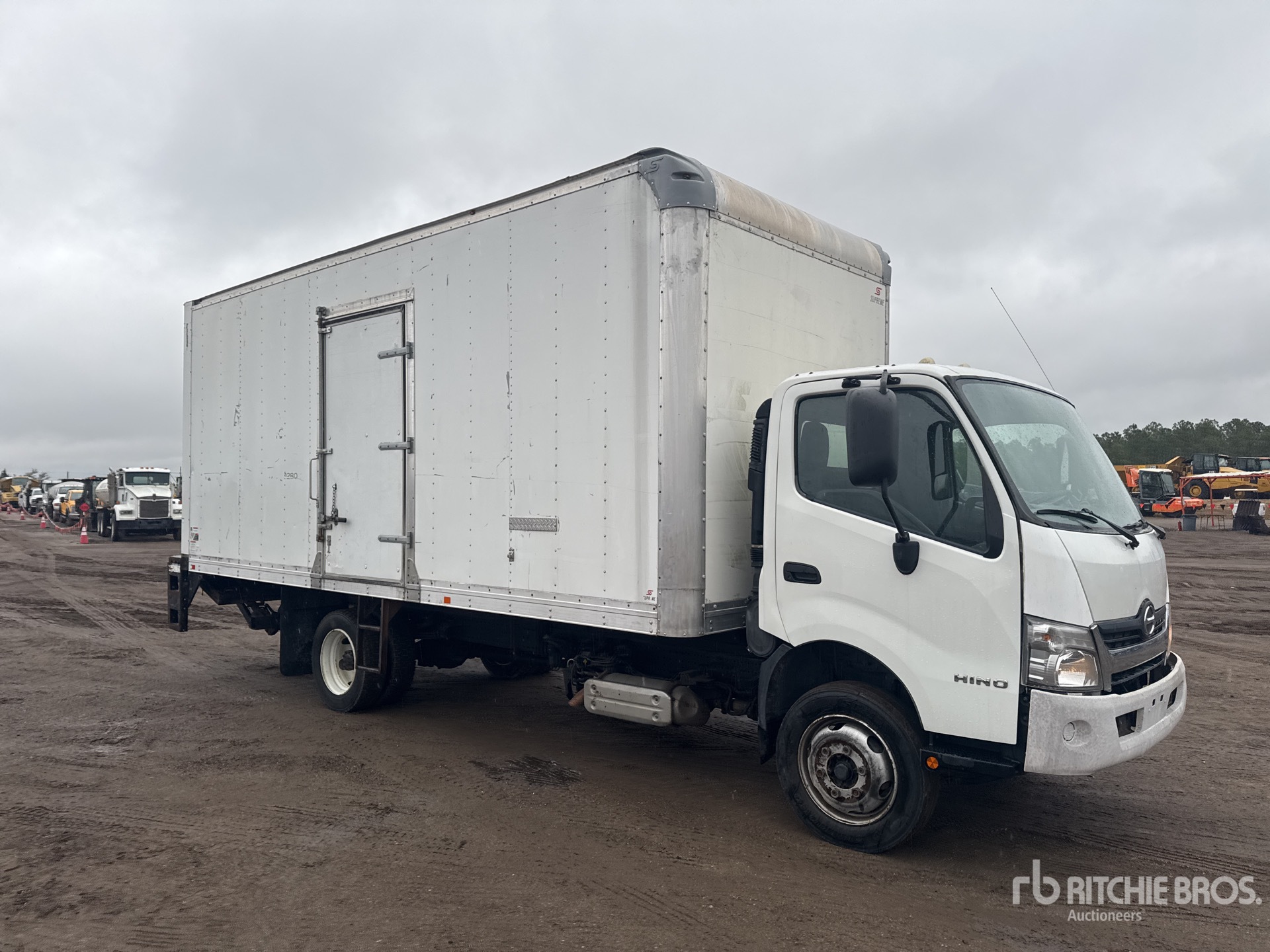 Located in Lane 209 Spot 26, Hino J05E-TP 4 Cylinder Diesel 210 hp Engine, 2018 US EPA Label, Requires Diesel Exhaust Fluid, Automatic Transmission, 7270 lb Front Axle, 13660 lb Rears, 19500 lb GVWR, 225/70R19.5, Spring Suspension, 176 in Wheelbase, Supreme 20 ft x 96 in Wide x 97 in High Body, Curbside Door, Liftgate