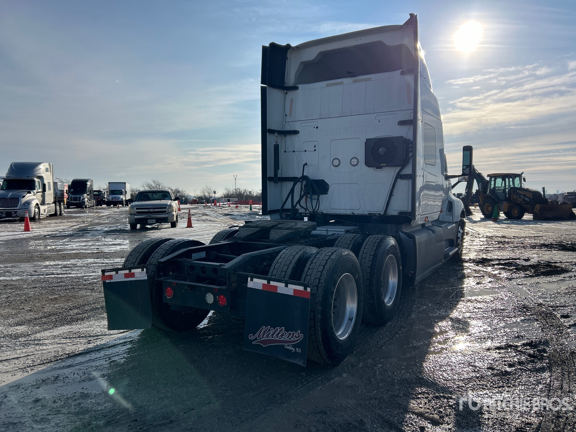 Cummins X15 450 hp Engine, 2018 US EPA Label, 23637 Engine hrs, Automated Transmission, 12350 lb Front Axle, 40000 lb Rears, 52350 lb GVWR, 56 in High Rise Sleeper Cab, Bunk Beds, Auxiliary Power Unit, 224 in Wheelbase, Air Suspension, Aluminum Wheels, 295/75R22.5, Air Sliding 5th Wheel, Dual Fuel Tanks