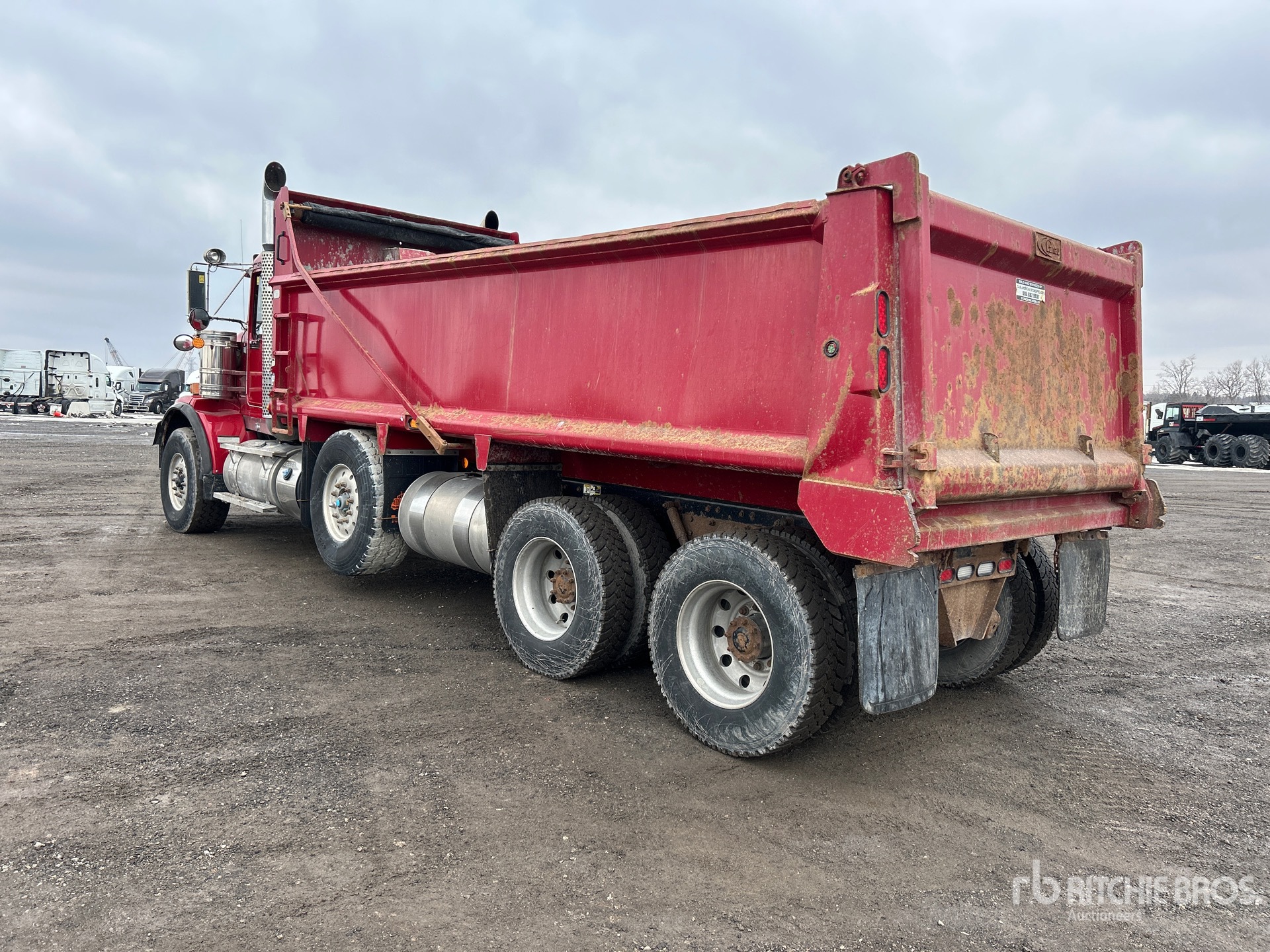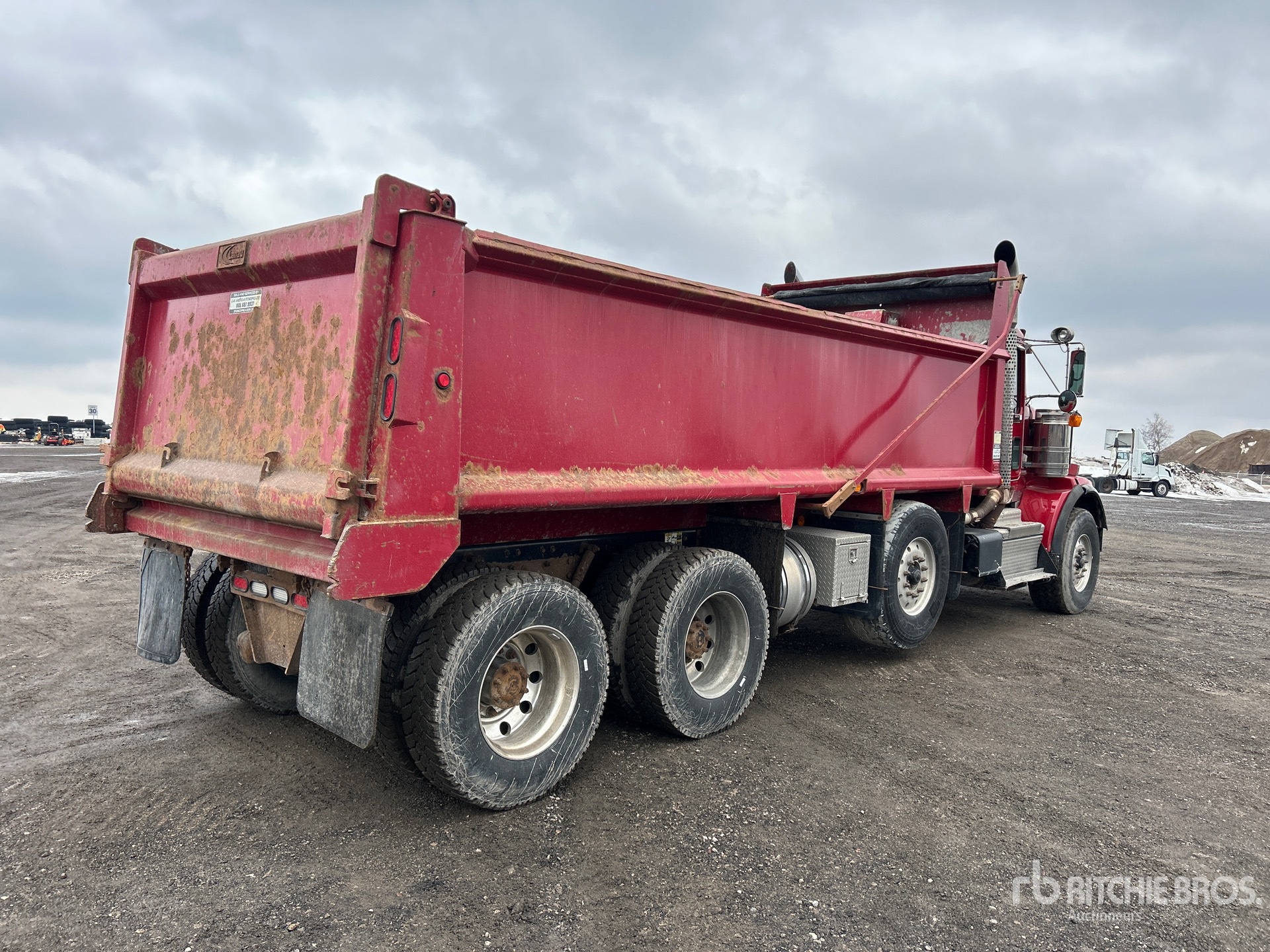 Cummins X15 6 Cylinder Diesel 525 hp Engine, 2018 US EPA Label, CARB Compliant, Requires Diesel Exhaust Fluid, 14945 Engine hrs, Engine Brake, Automatic Transmission, Double Differential Locks, 9072 kg Front Axle, 29938 kg Rears, 3.91:1 Axle Ratio, 39010 kg GVWR, Aluminum Wheels, 425/65R22.5 Front Tires, 11R22.5 Rear Tires, Air Lift Pusher Axle, Steerable Air Lift Pusher Axle, Steerable Air Lift Tag Axle, Double Frame, Walking Beam Suspension, 268 in Wheelbase, Lanau 19 ft Long x 3 ft 6 in High Body, Air Powered Roll Tarp