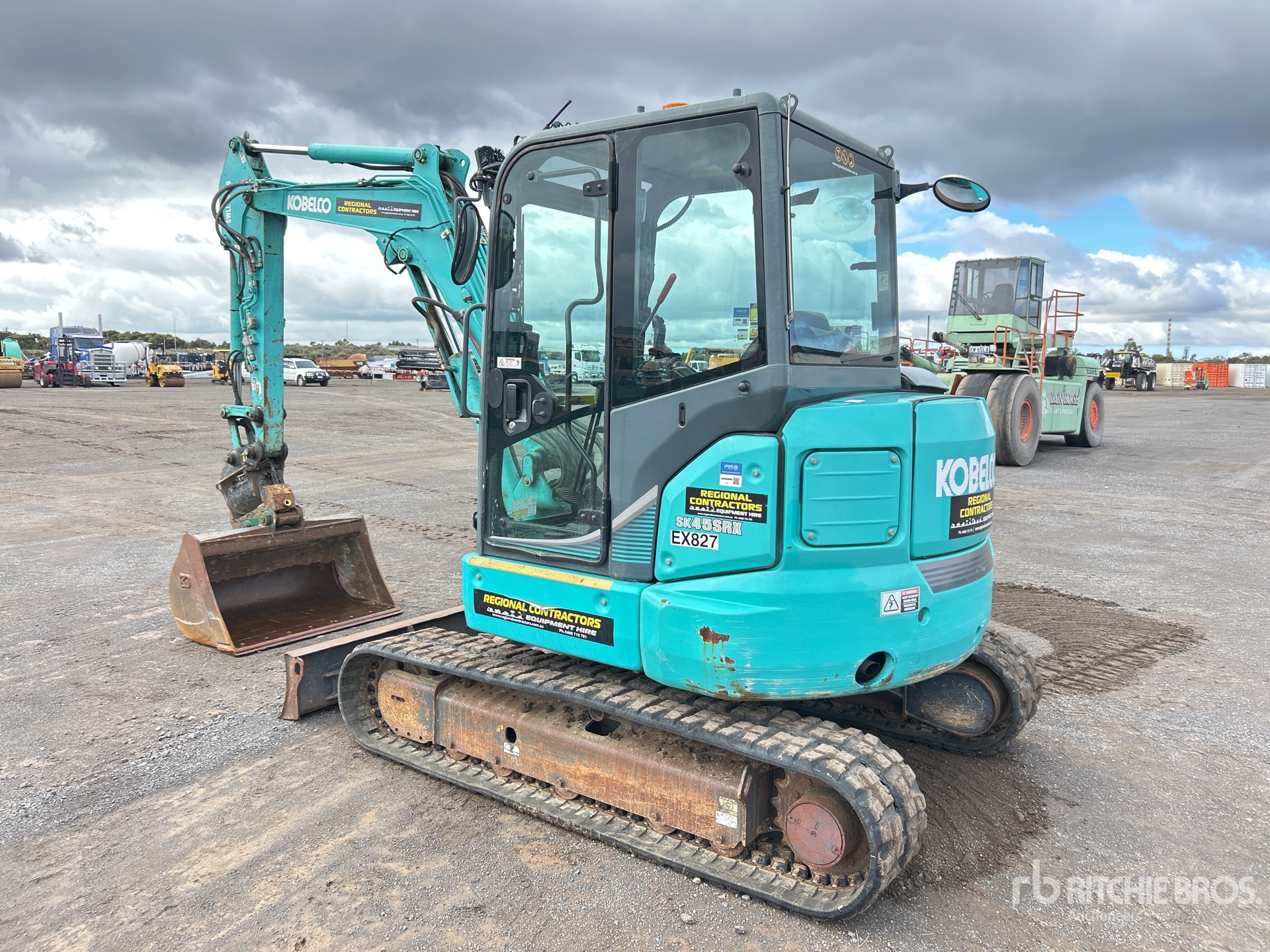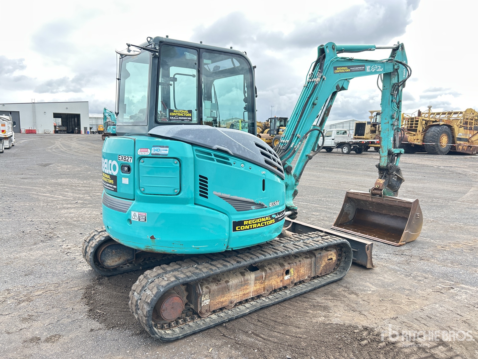 Enclosed Cab, Air Conditioner, Control Pattern Changer, Swing Boom, 1550 mm Stick, Auxiliary Hydraulic Plumbing, Backfill Blade, 400 mm Rubber Tracks, Tilting Hydraulic Quick Coupler, 1200 mm Cleanup Bucket
