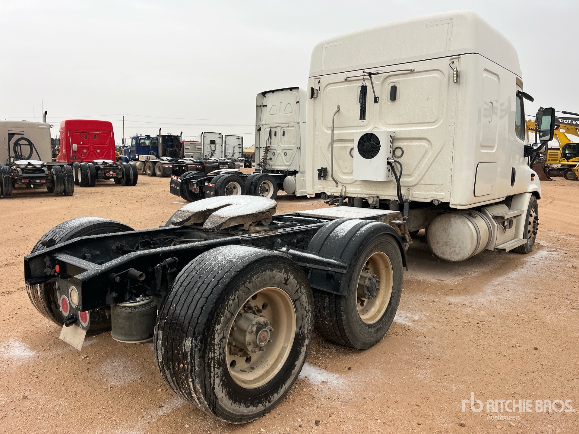 Detroit DD13 450 hp Engine, Eaton Fuller FAO-16810C-EA 10-Speed Automated Transmission, 12500 lb Front Axle, 40000 lb Rears, 52500 lb GVWR, 60 in High Rise Sleeper Cab, 230 in Wheelbase, Air Suspension, Aluminum Wheels, 295/75R22.5 Front Tires, 445/50R22.5 Super Singles Rear Tires, Air Assist Front Suspension, Air Sliding 5th Wheel, Dual Fuel Tanks
