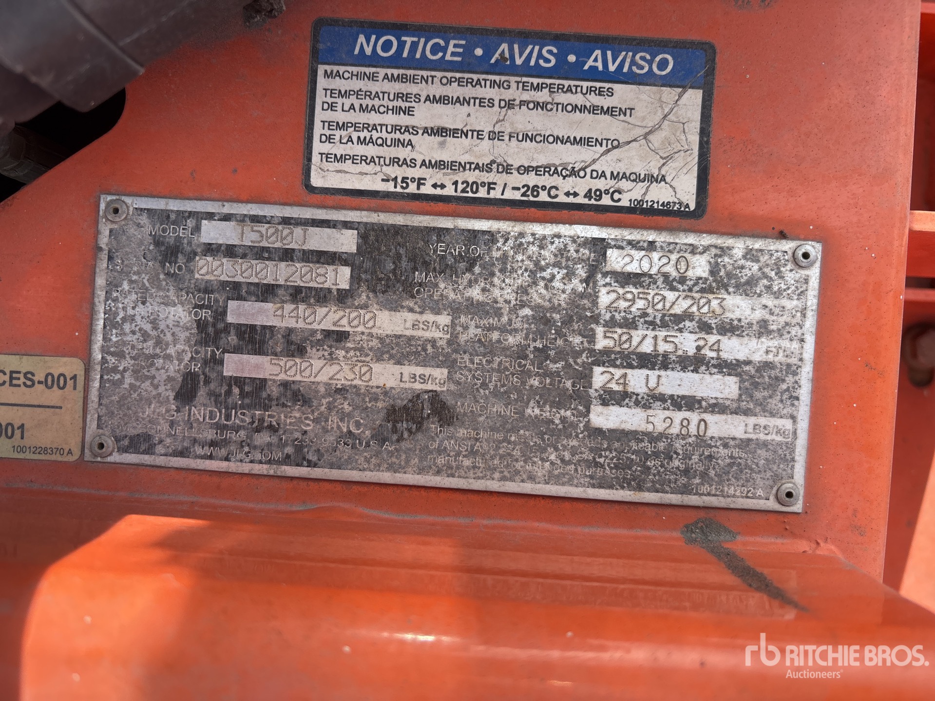 詳細的設備資訊範圍有限,利氏兄弟拍賣行並未檢驗除此處明確規定以外的任何設備部分或組件。除非明確說明,否則我們對設備或其組件不做任何明示或暗示的陳述或保證,包括但不限於有關功能性、符合性或遵守任何適用當局或監管機構的任何安全標準或要求、適合任何特定用途或適銷性的陳述或保證。強烈建議您在投標前自行詳細檢驗設備。