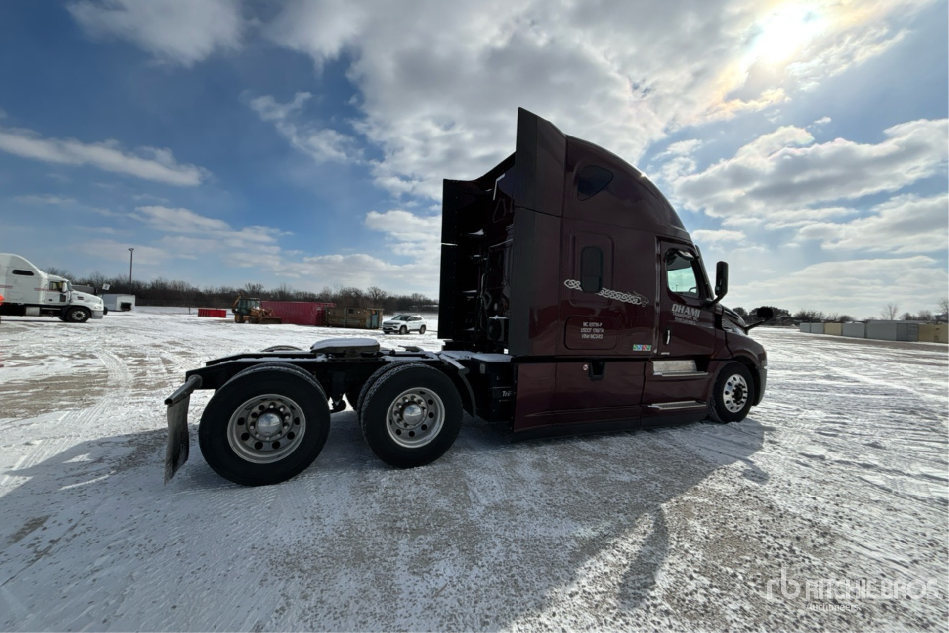 Located in Lane 18 Spot 25, Detroit DD15 400 hp Engine, 2020 US EPA Label, 14202 Engine hrs, Detroit DT12-1750-DH1 12-Speed Automated Transmission, 12350 lb Front Axle, 40000 lb Rears, 52350 lb GVWR, Engine Brake, 72 in High Rise Sleeper Cab, Bunk Beds, Bunk Heater, Auxiliary Power Unit, 227 in Wheelbase, Air Suspension, Aluminum Wheels, 295/75R22.5, Air Sliding 5th Wheel, Dual Fuel Tanks