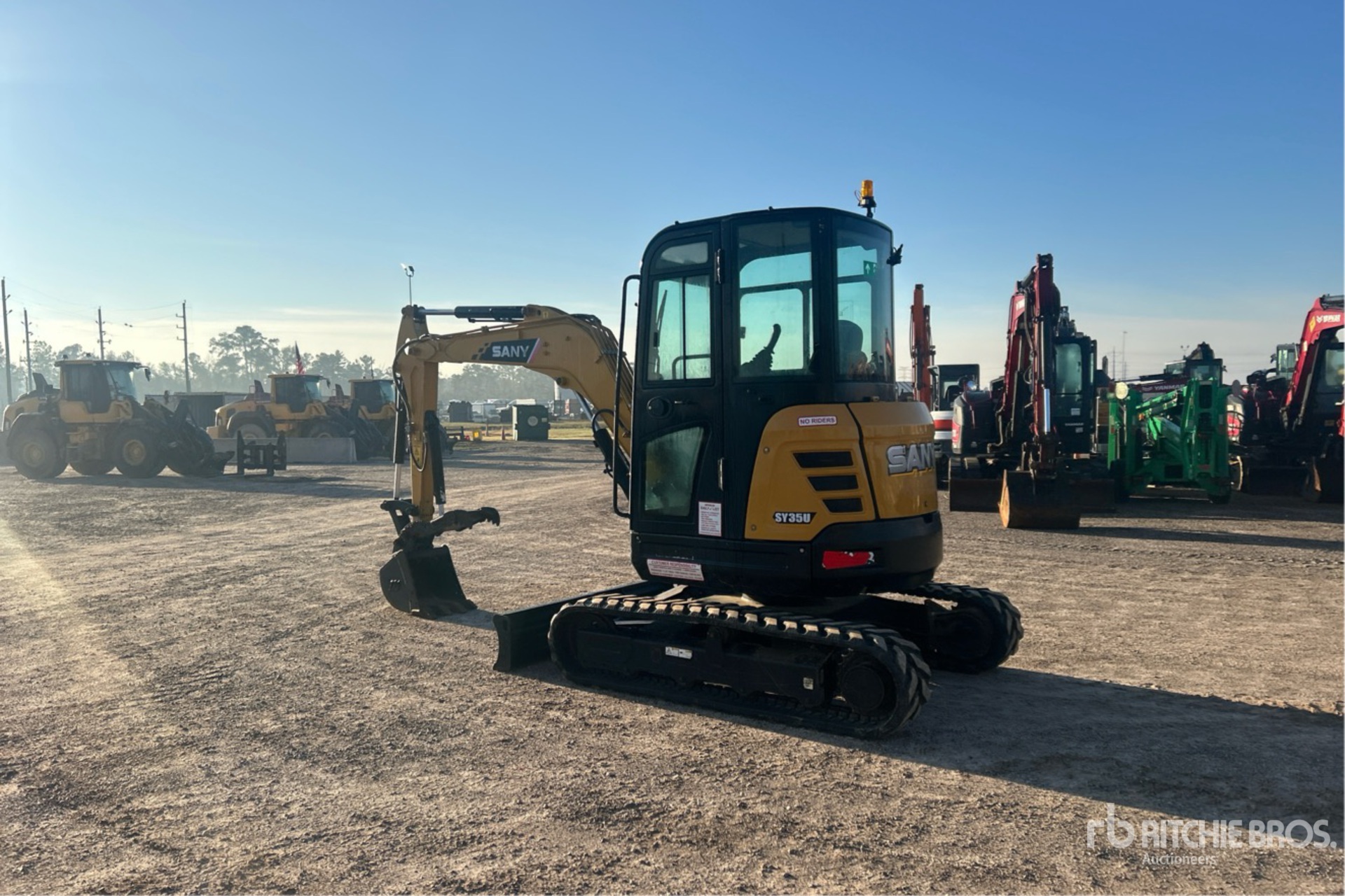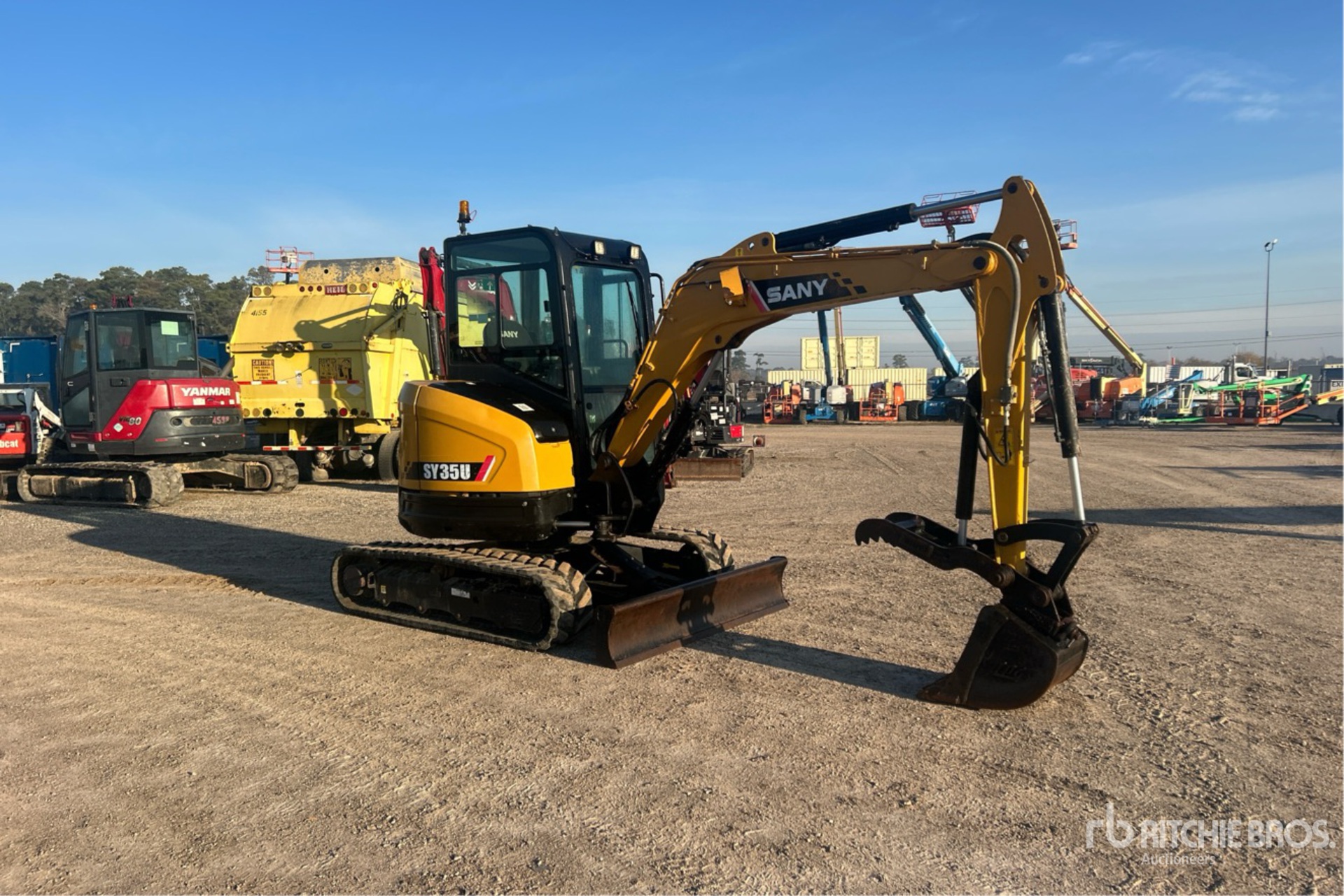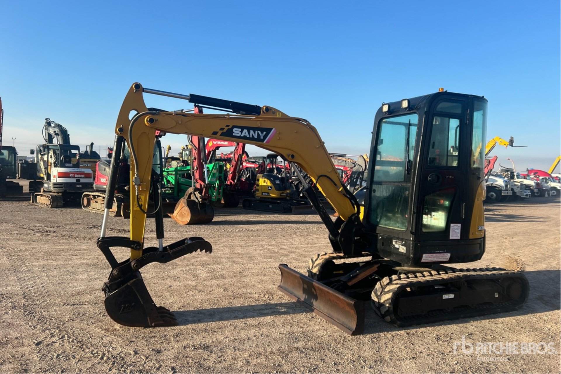 Enclosed Cab, Air Conditioner, Swing Boom, 4 ft 7 in Stick, Auxiliary Hydraulic Plumbing, Backfill Blade, 11.5 in Rubber Tracks, Manual Quick Coupler, 18 in Digging Bucket, Hydraulic Thumb