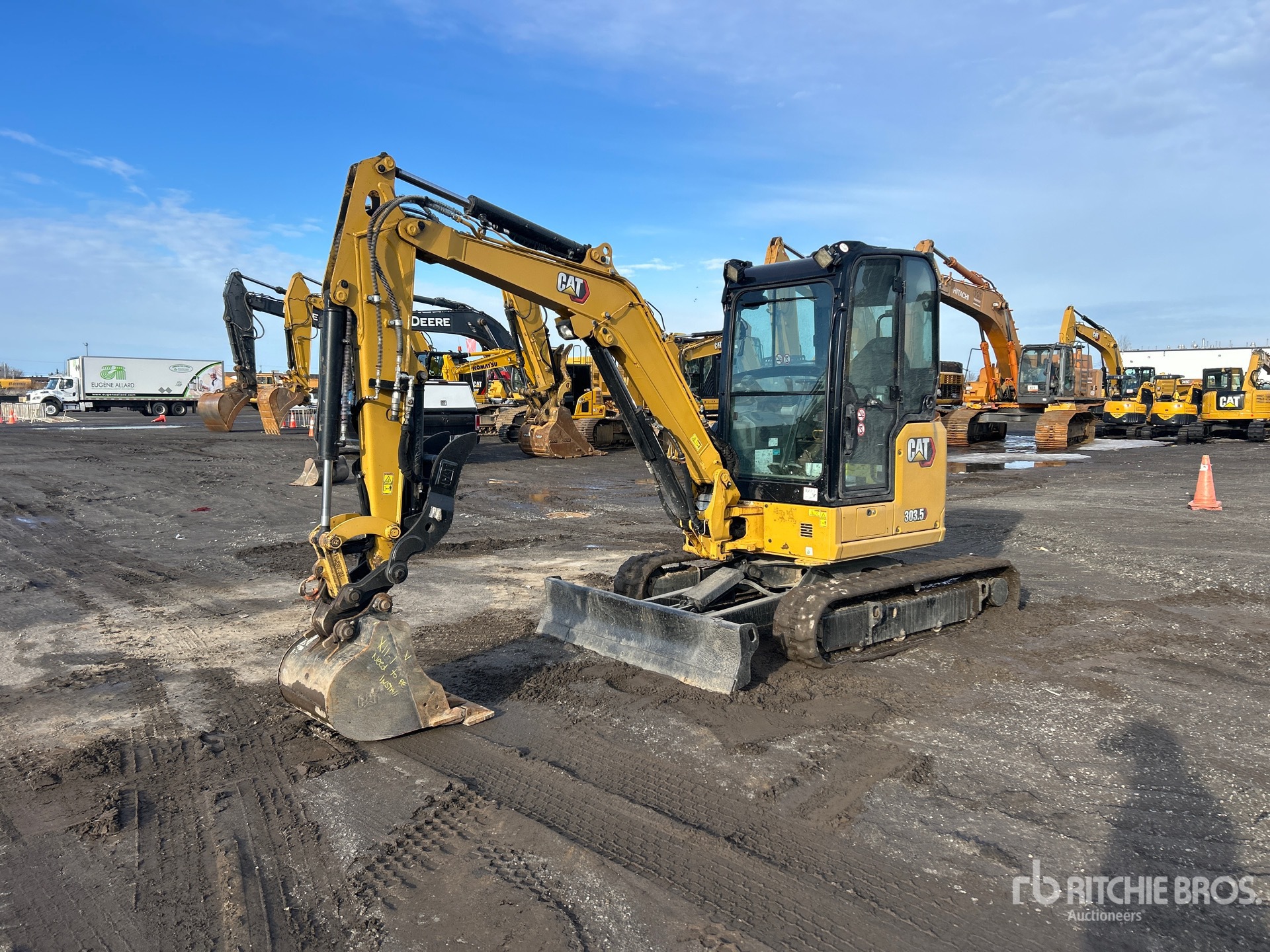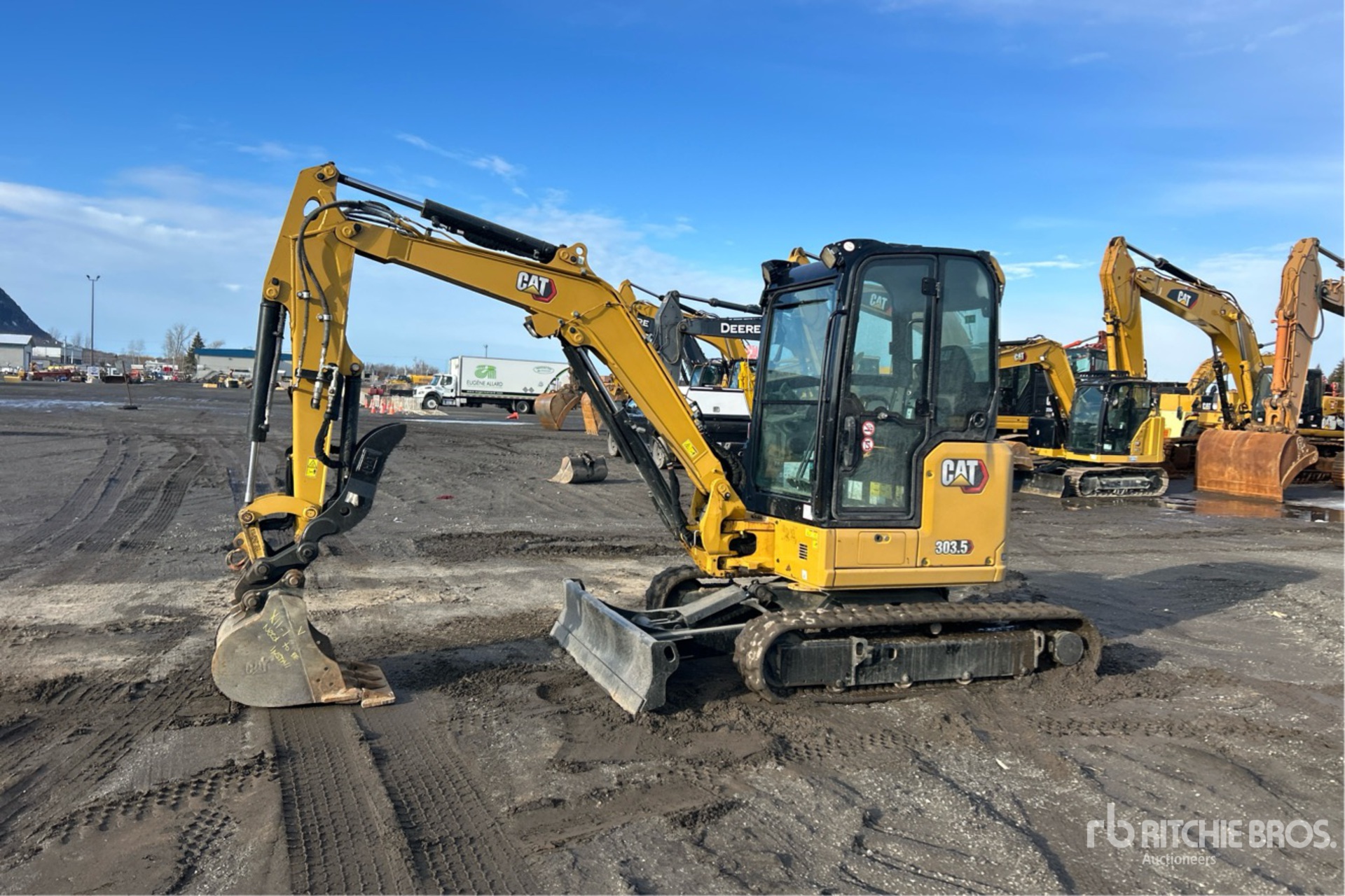 Enclosed Cab, Air Conditioner, Straight Travel Pedal, Swing Boom, 5 ft 2 in Stick, Auxiliary Hydraulic Plumbing, Backfill Blade, 12 in Rubber Tracks, Hydraulic Quick Coupler, 21 in Digging Bucket, Hydraulic Thumb